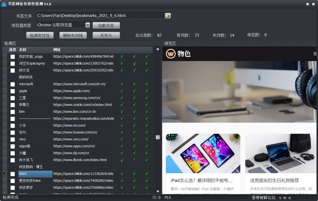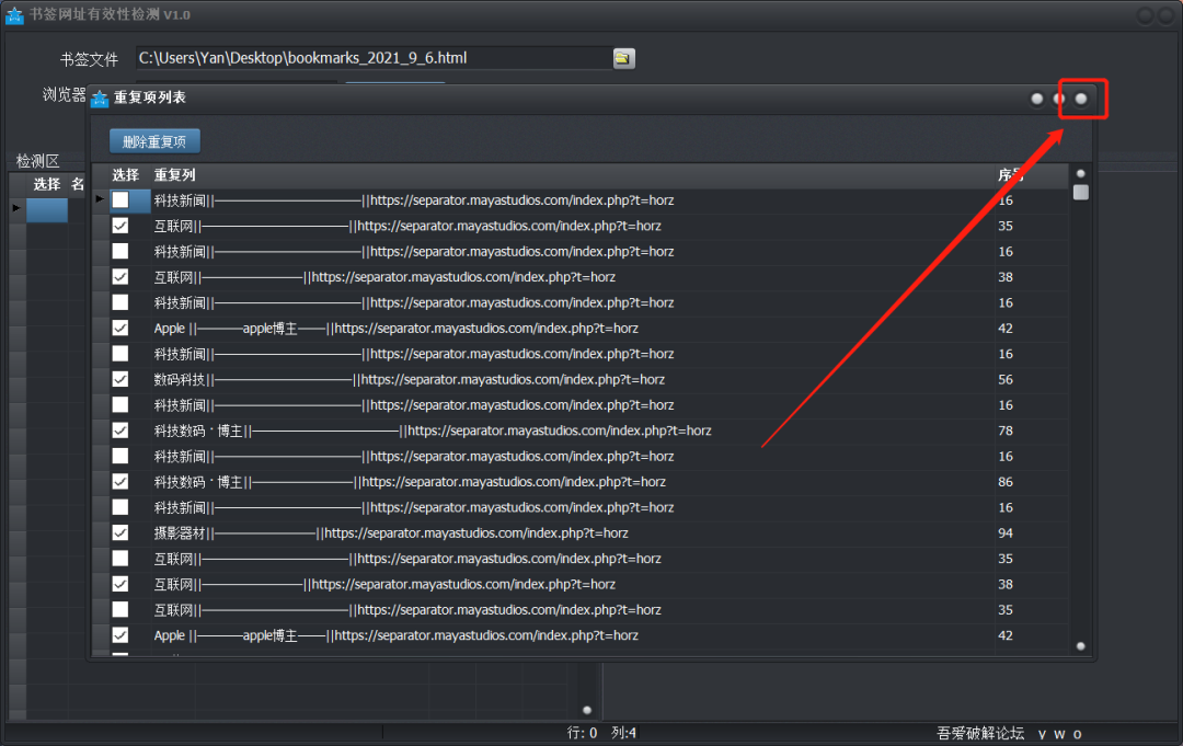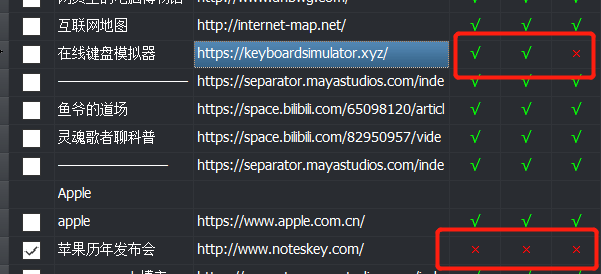 有几个注意事项也跟大家同步一下:如果你收藏的网址非常多,像刺客这种过万的,直接怼,不好意思会直接崩溃,所以,建议大家分批来检测,另外,软件目前不支持代理访问(你懂得),所以这些网站大家心里门清就行。