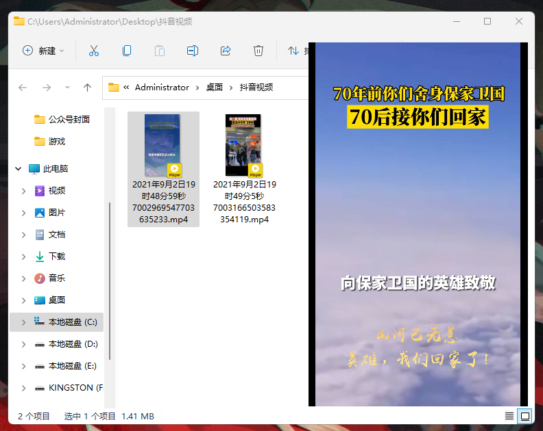 选择“视频下载”后,软件会自动在桌面上生成一个文件夹(名称:抖音视频),下载的格式清一色为MP4。