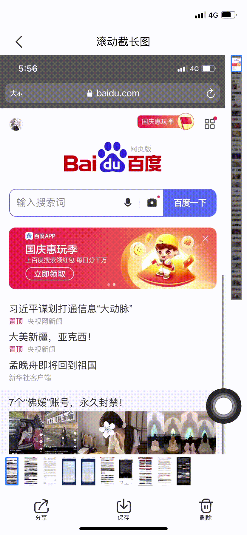 滚动长截图,这个大家应该不陌生吧,因为之前在介绍手机端长截图的内容里有过介绍,这次也就同时给到大家,首先,下载好软件后,只要用手机打开想要截长图的页面,然后开启控制面板,长按“录制”按钮: