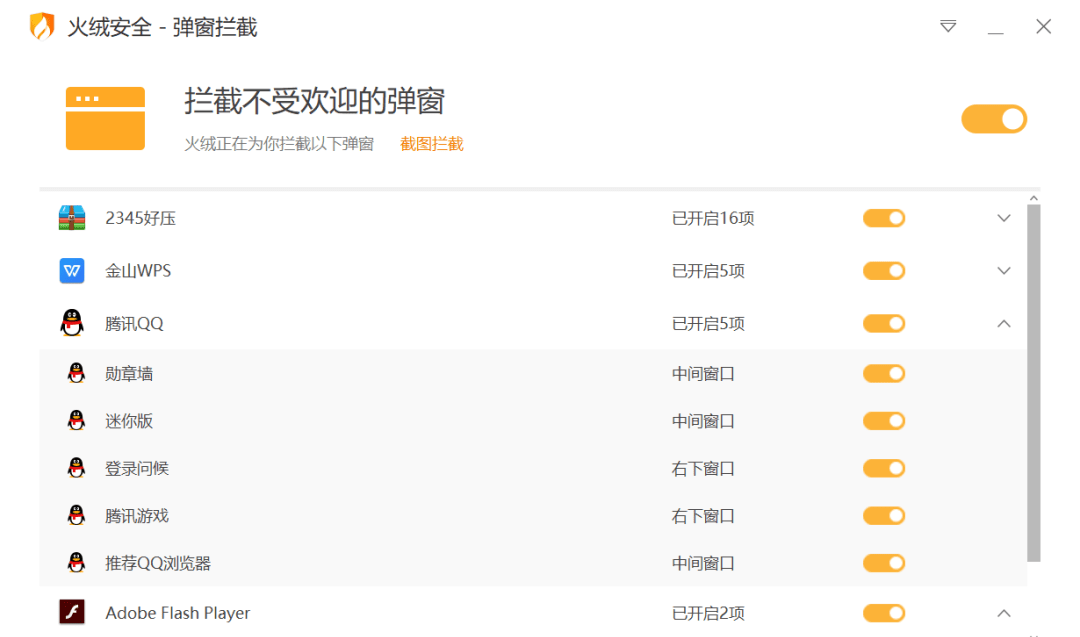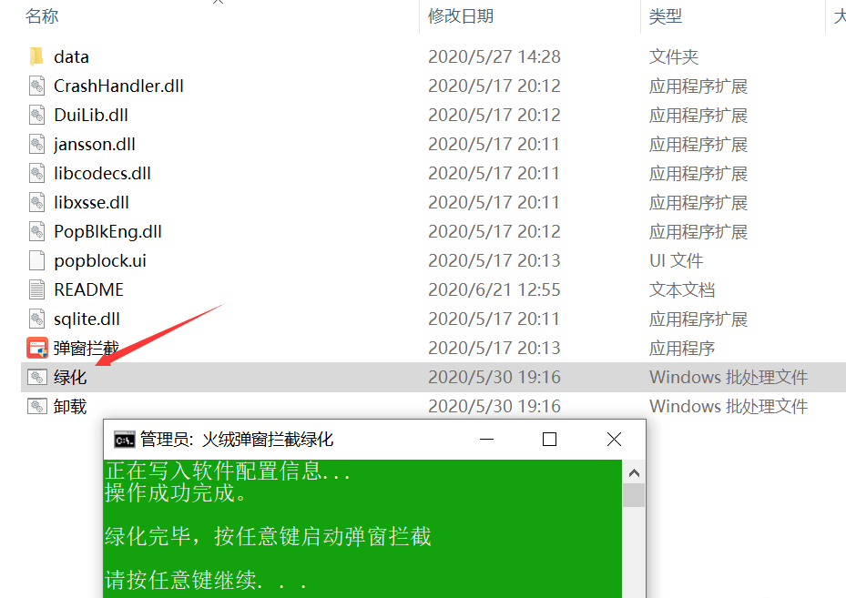 之后双击文件夹中的“弹窗拦截”,软件就开始运作了。