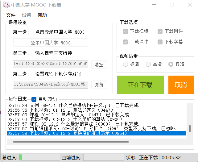 MOOC下载器,这是一款专门用来下载慕课网站资源的下载器,软件无需安装,领取刺客提供的压缩包后,解压双击.exe程序即可: