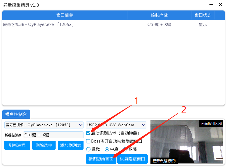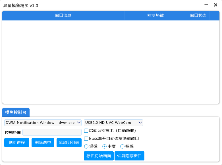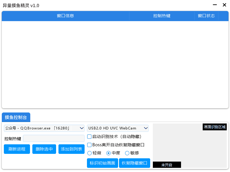 异量摸鱼精灵,这一款彻底颠覆所有人认知的全新摸鱼神器,虽然也是通过摄像头来摸鱼,但它并不需要那么麻烦的去搞什么人脸识别,只要标记一个初始画面就可以了,只要这个画面有了变化,就会立刻隐藏所有相关程序进程。