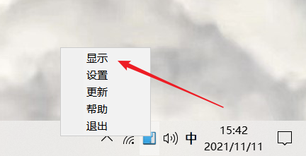 然后,我们在在桌面右下角状态栏里,找到相应图标,并鼠标右键点击“显示”,即可打开主界面:
