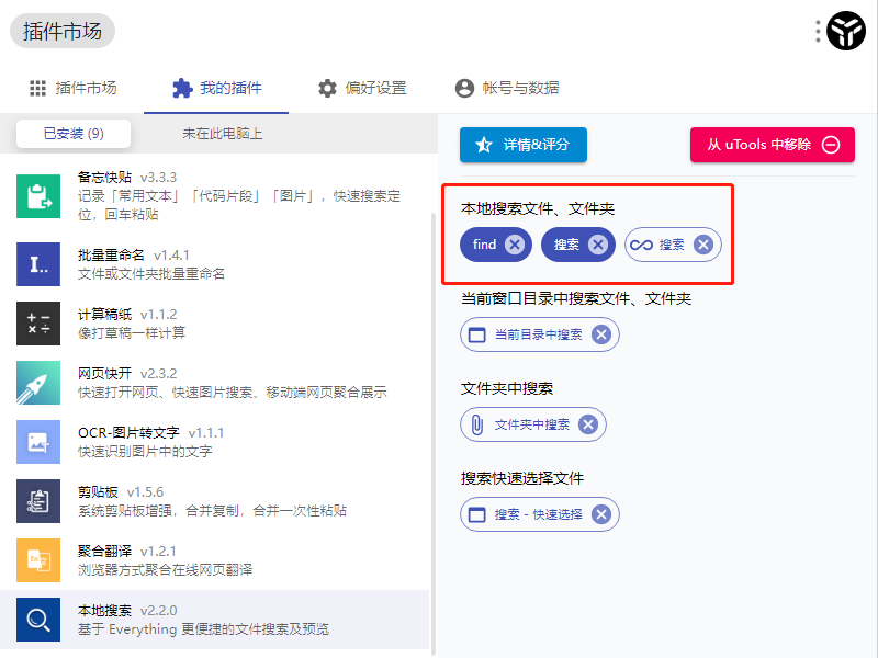 如果想更快捷的操作,可以通过标签化来管理,每个插件都有相应的标签,像everything的关键字是搜索、find: