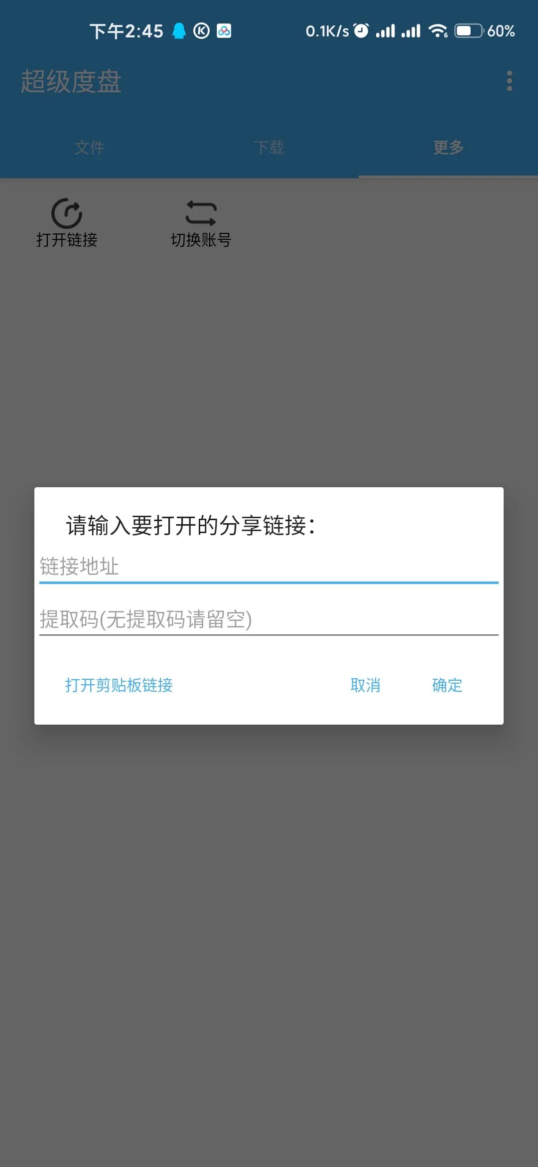 如需下载外部链接的文件,在“更多”里选择“打开链接”,将外部链接和提取码粘贴进来即可下载。
