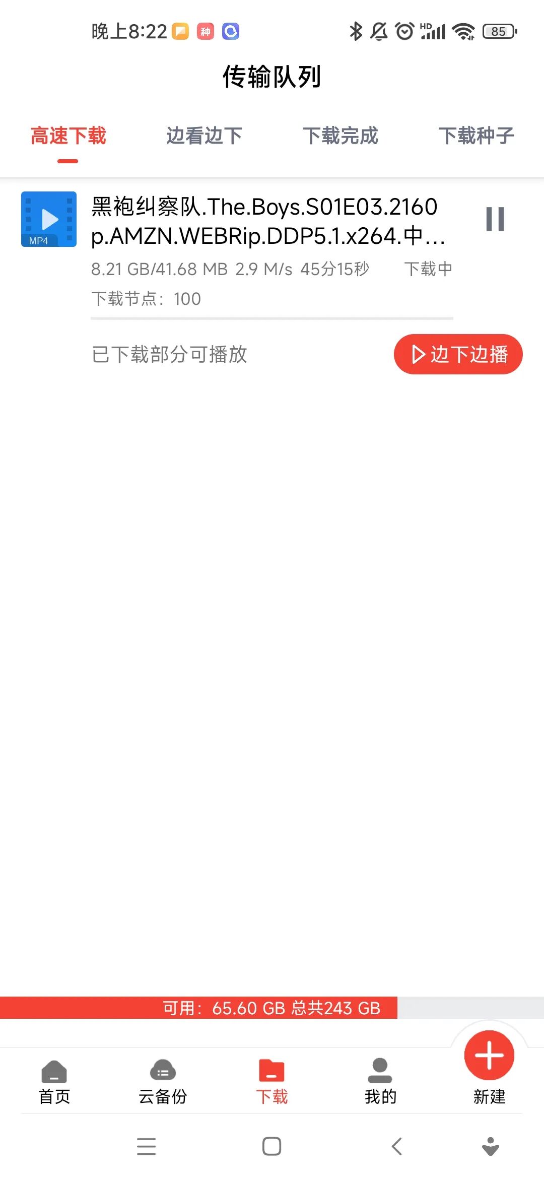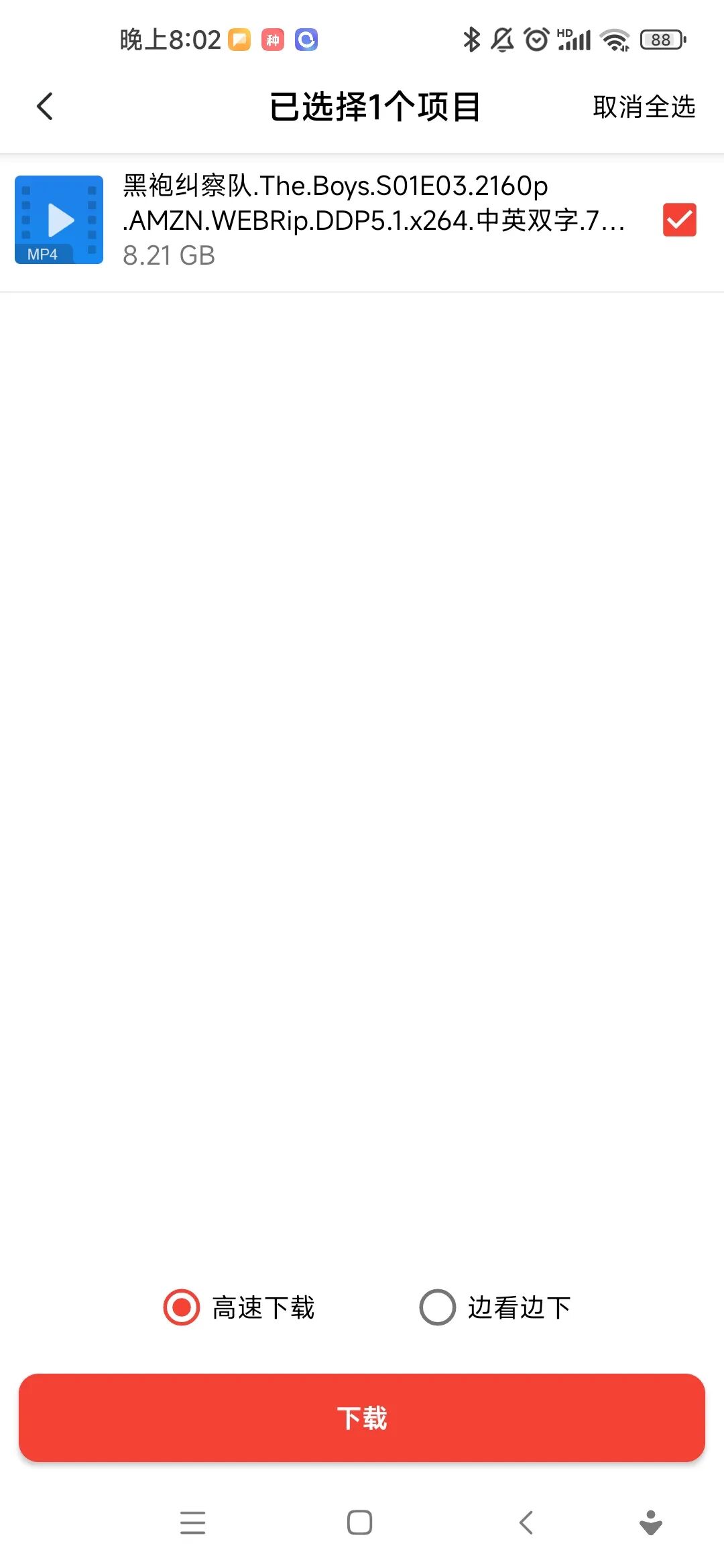 不仅可以高速下载,也可以选择边看边下,至于下载速度,有图有真相: