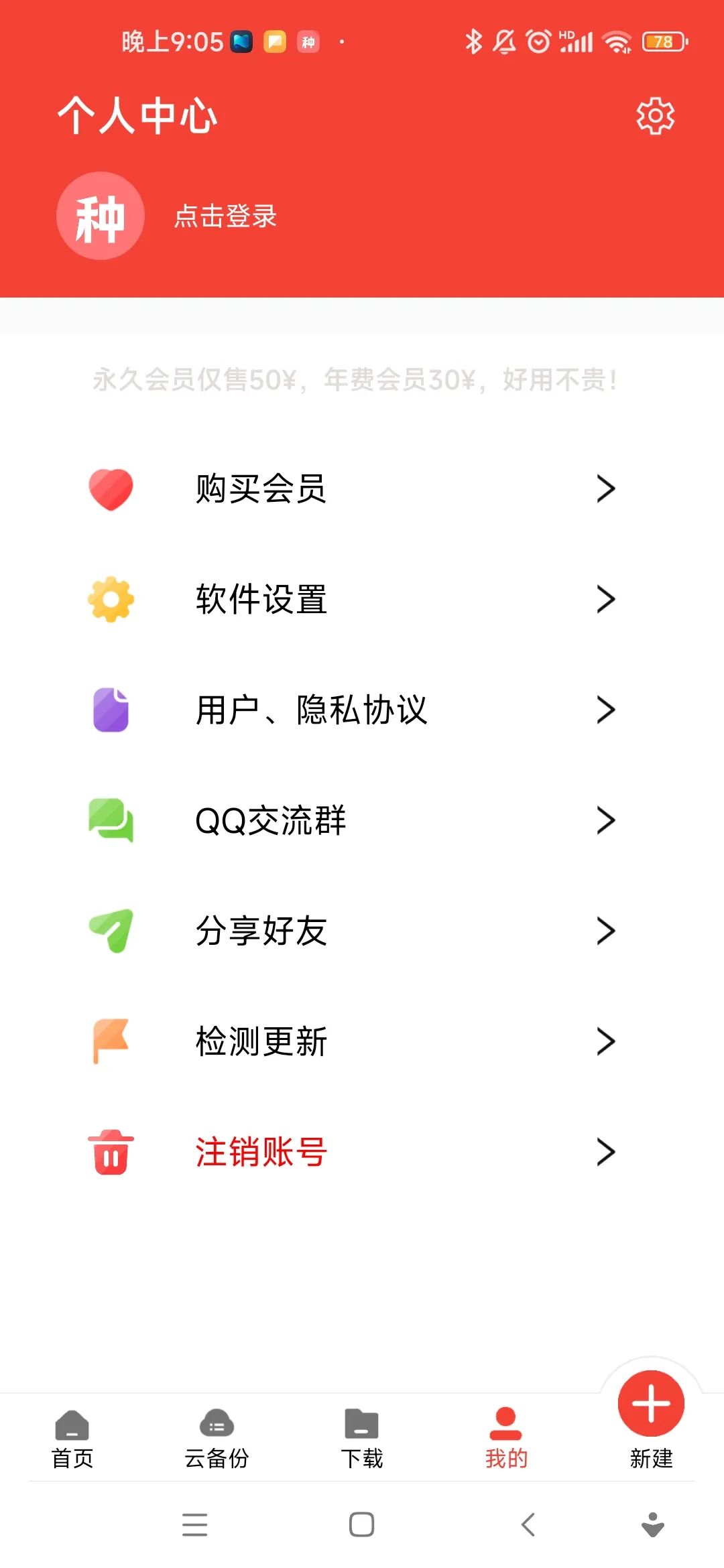 软件也自带了云备份功能或者叫云空间,不过这个功能则需要登录之后才可以使用: