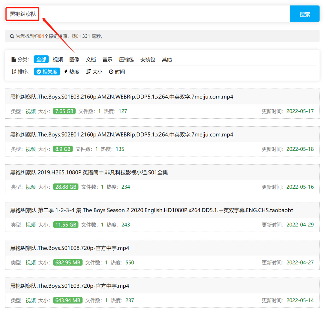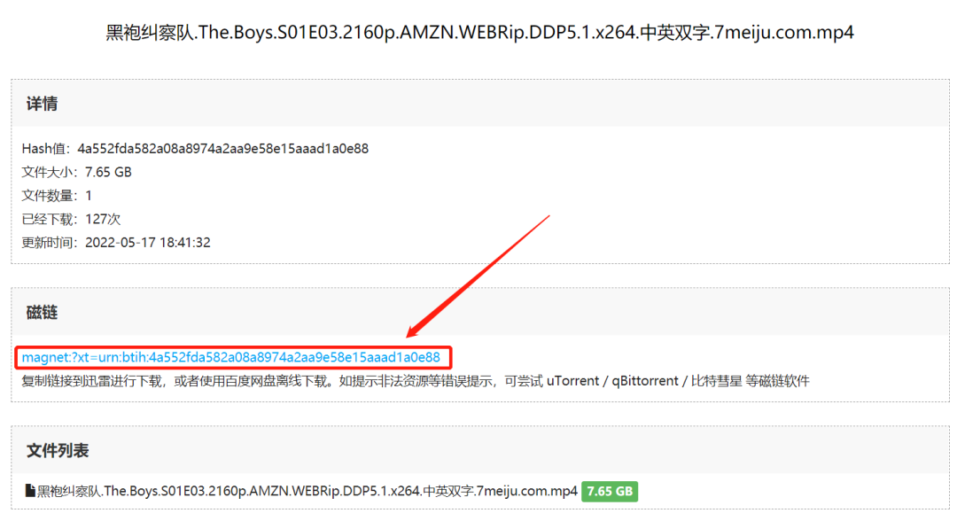 完成以上步骤后,我们就来实际演示一下,首先,打开任意的磁力搜索工具,找到相应的资源链接,这里有些小伙伴可能就要问了:去哪里找呢?其实,这些内容都在刺客主页上的“磁力资源下载”合集里,不了解的朋友,可以通过下方的传送门获取。