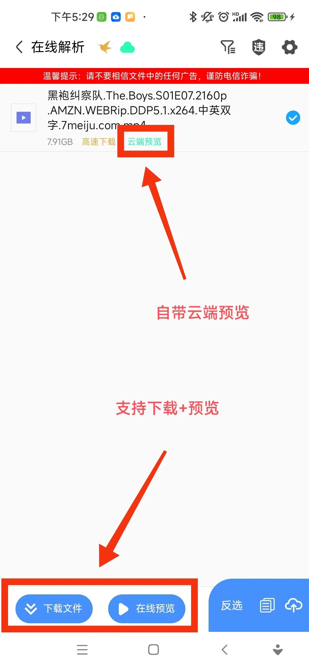 点击“解析”瞧瞧,软件自带高速下载和云端预览功能,绝对的神器本器!