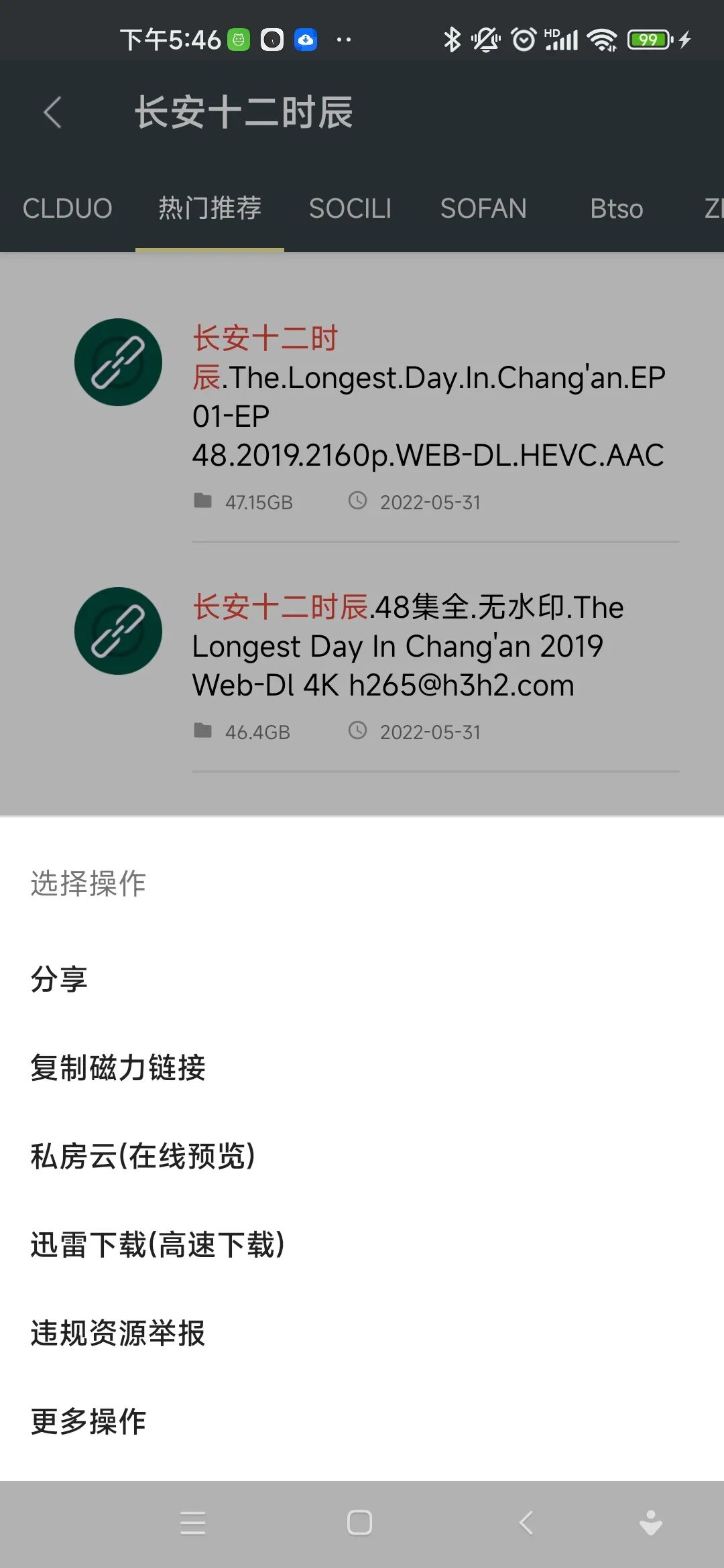 先一千道一万,不如直接走两步瞧瞧,大家先用刺客之前分享的磁力搜索APP,找到想要下载的资源,比如这个: