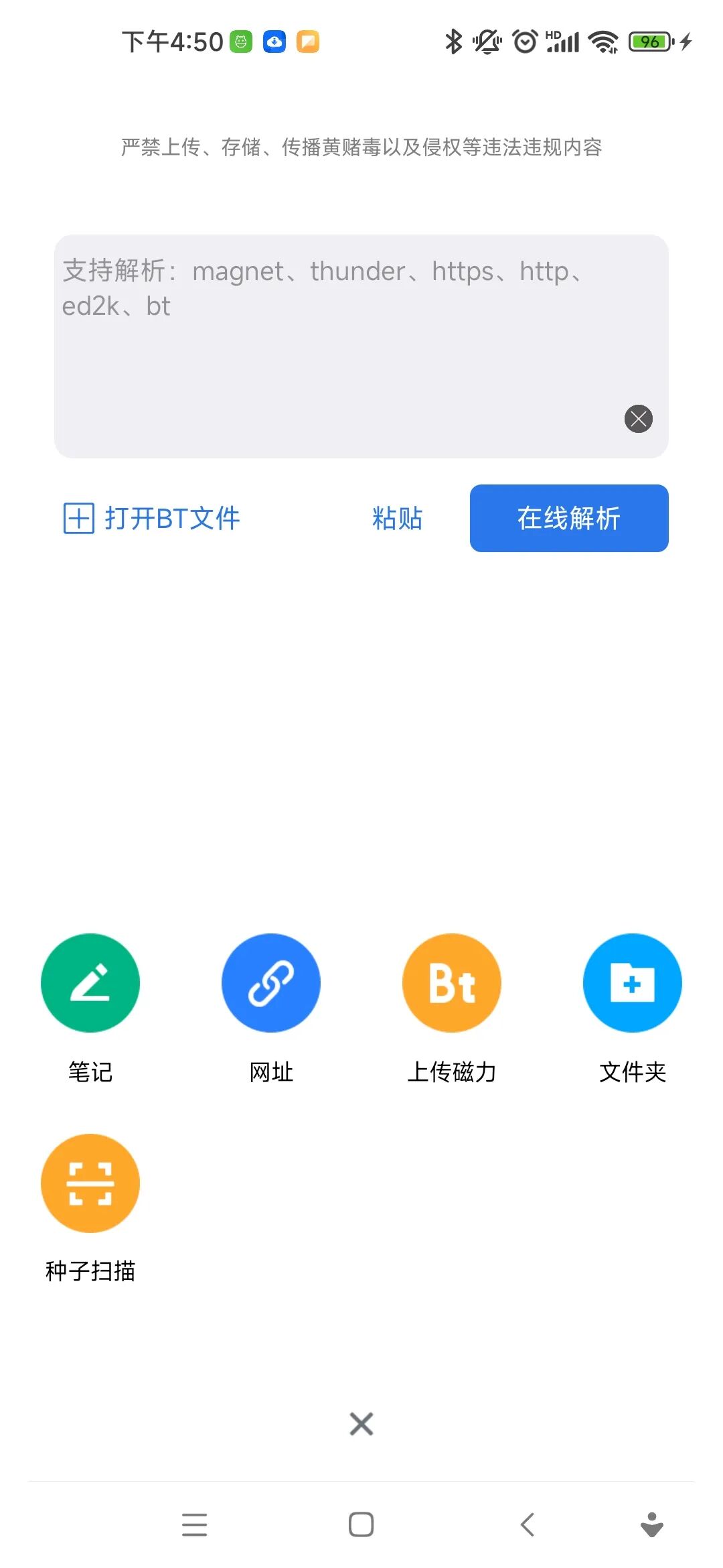 可以看到支持的资源种类包括:磁力、迅雷链、https、http、电驴、BT种子。