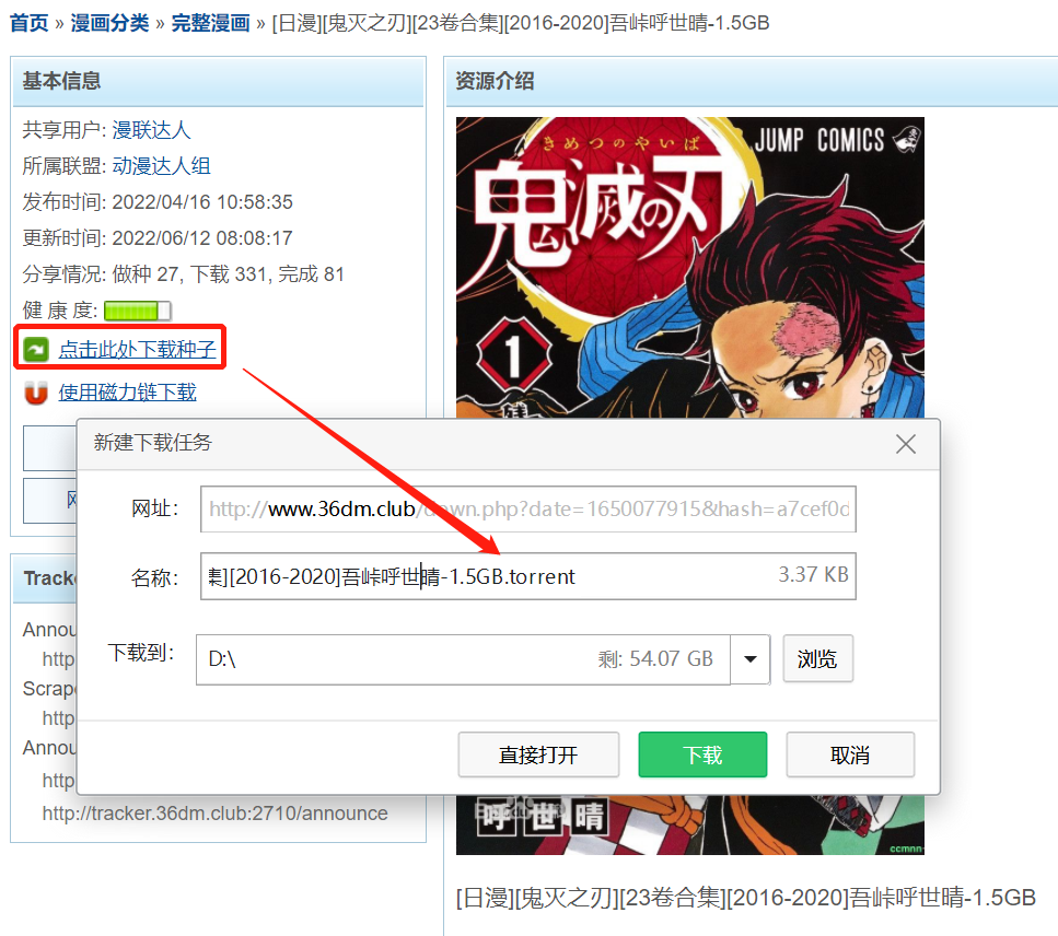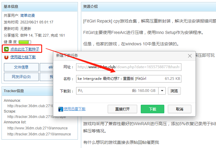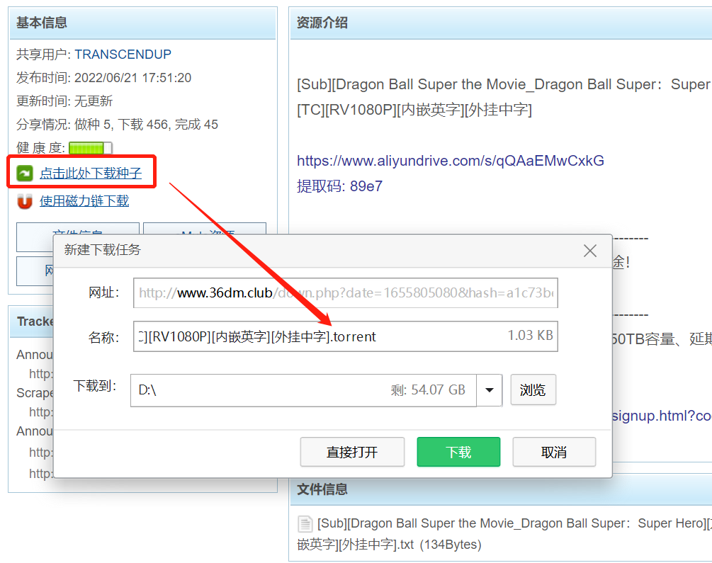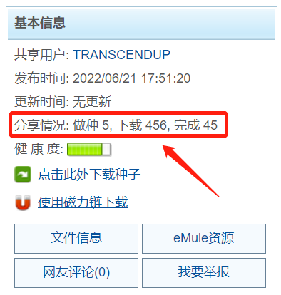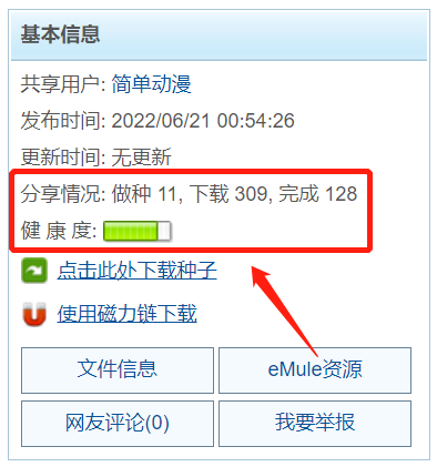 磁力链也是大同小异,点击后,便会触发相应软件进行下载,这个网站最厉害的是,它是能够实时播报资源情况:多少人做种、多少人下载完成、多少人完成;并且附上了健康度。