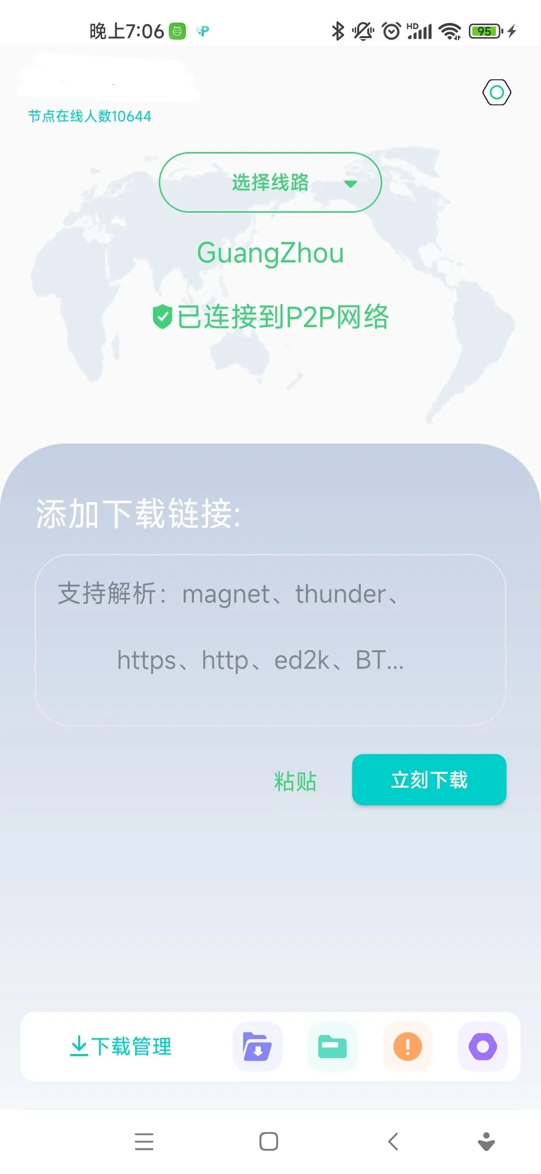 软件打开,非常的清爽,使用过程中没有任何广告,主页直接显示了资源地址下载输入框,以及优化线路: