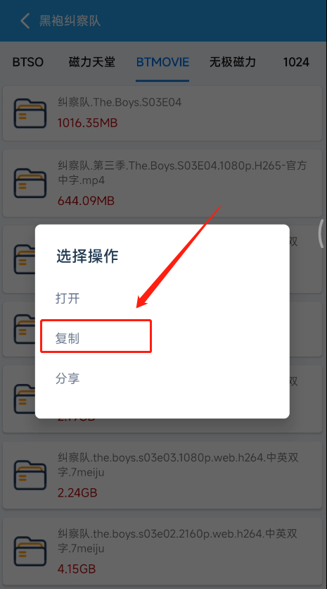 点击任意想要下载的资源,然后,在弹窗中选择“复制”: