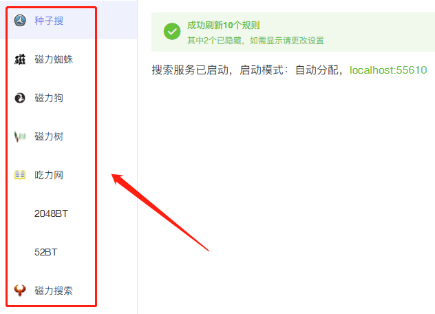 如果遇到没有搜索结果的情况,也不用紧张,切换左边的引擎就可以了: