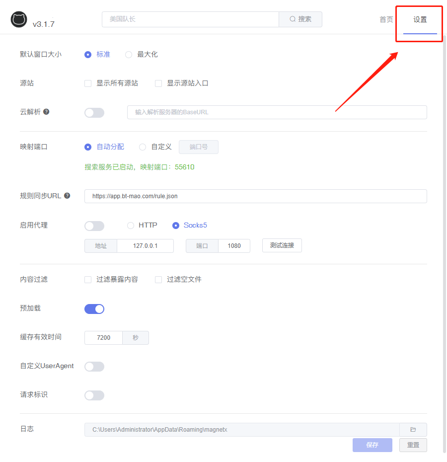 还是老话说的好:“搜索玩得好,资源少不了”,另外,软件右上角的“设置”里,也提供了大量的定制化选项,老手随便嗨,新手小白就默认好了:
