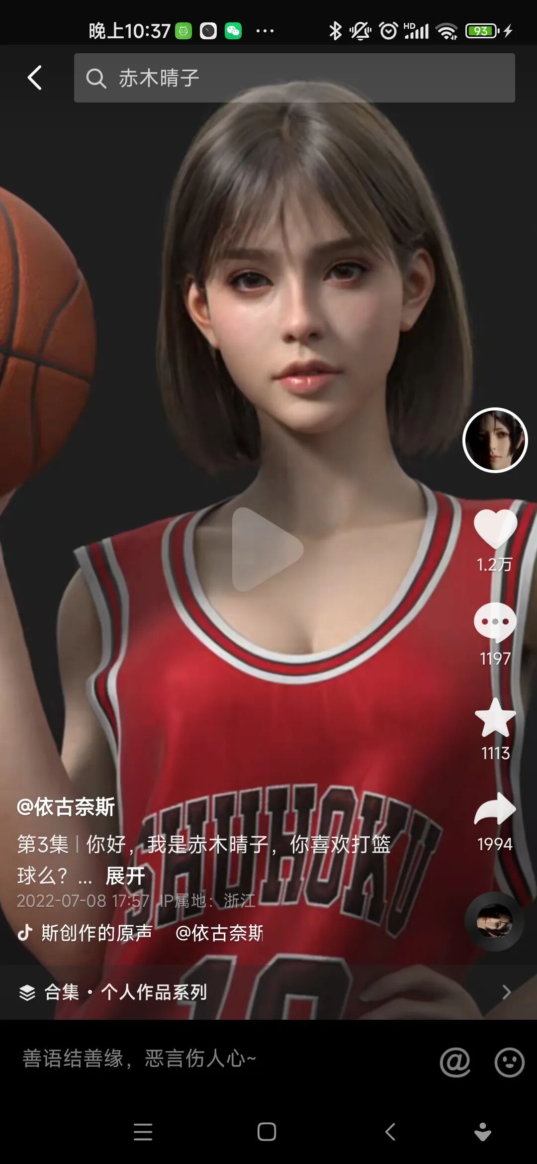接下来,刺客上个大招,“我是赤木晴子,你喜欢打篮球吗”,老铁们,有没有勾起一波回忆?