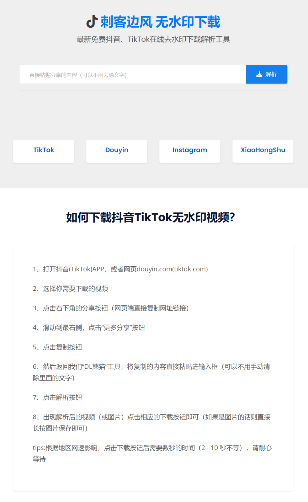 考虑到大家的实际需求,刺客今天,就要为小伙伴们安排一个支持所有电脑手机使用的在线解析下载网站,它不仅完全免费,更是没有任何的广告,同样也是无需注册登录即可使用,妥妥的最强视频下载神器!