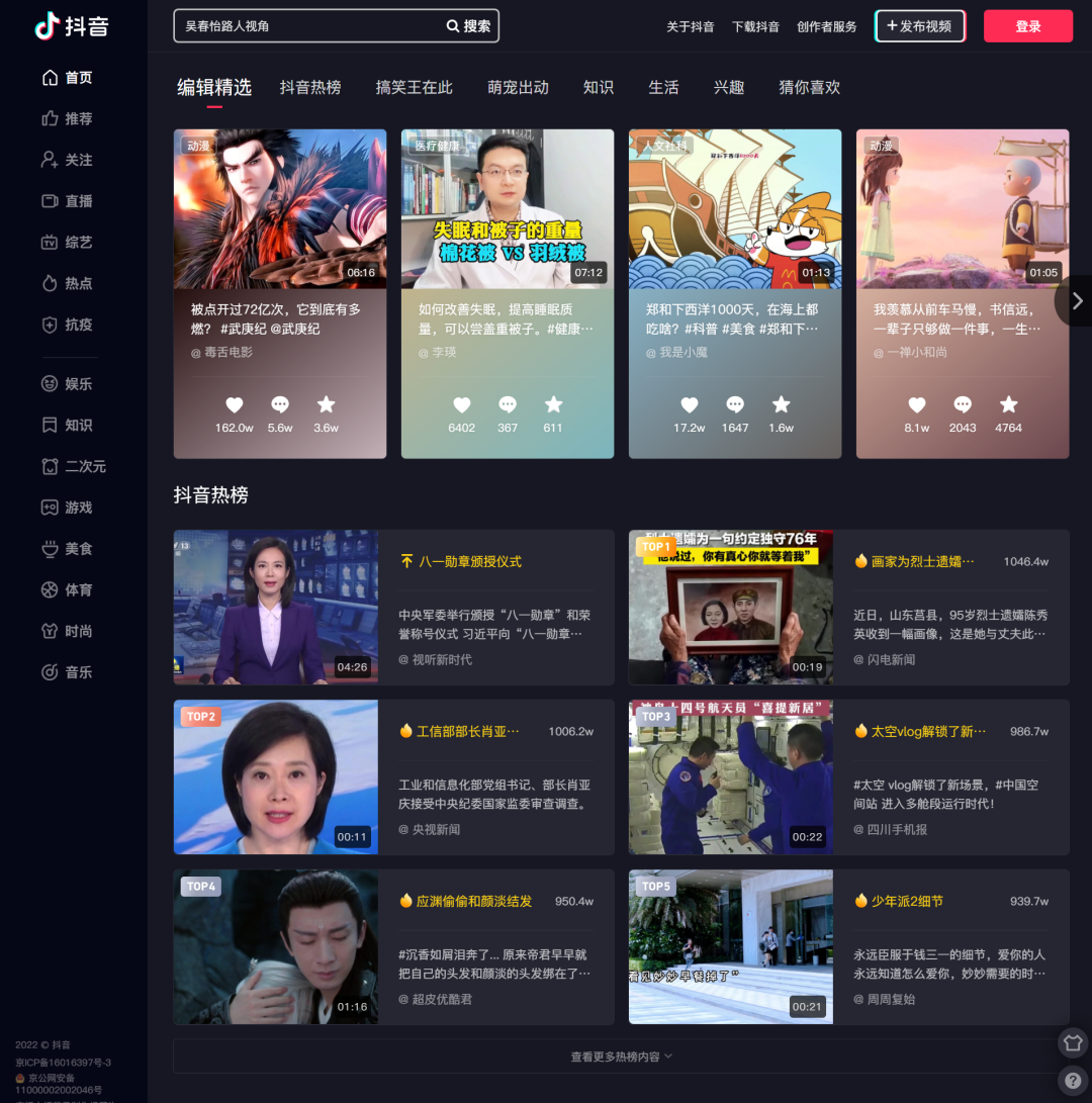 也正因为短视频的崛起,从而给予许多热衷分享、创作的人们更好的发挥舞台,不论是音乐、舞蹈、搞笑、情景剧、游戏演示、知识、科普还是任何你们感兴趣的内容,在这里,也全都能看到!刺客本人呢,也算是这些分享创作中的一员,还是那句经典台词:“谢谢你,看了我的分享”。