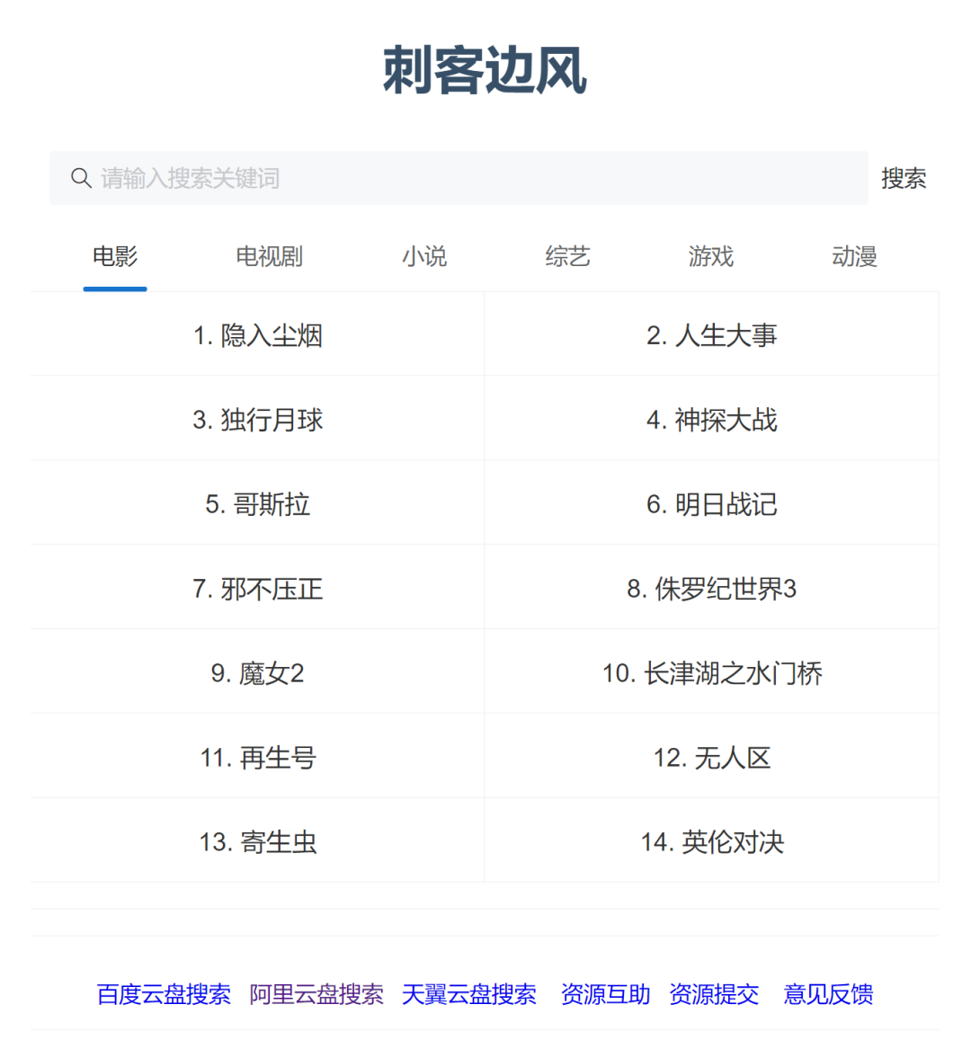 考虑到大家的需求,刺客今天,就为所有小伙伴们分享一个极为强大的网盘资源搜索网站,它同时支持阿里云盘、百度网盘、天翼云盘所有资源的一键搜索、下载,资源方面,则囊括了你们想要的一切!并且还是完全免费,没有任何的广告,同时,也是无需注册登录即可使用。