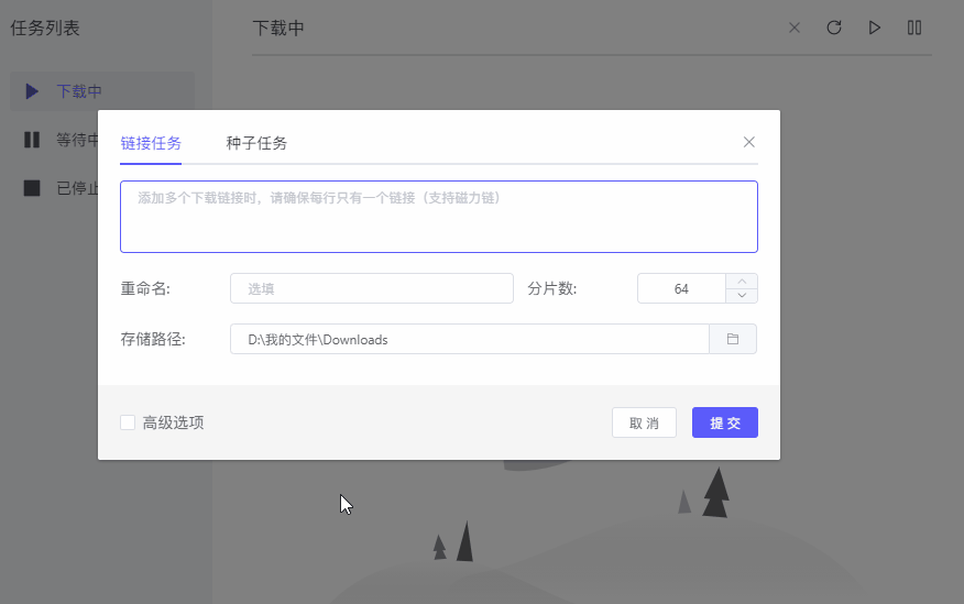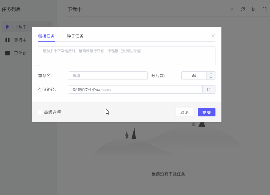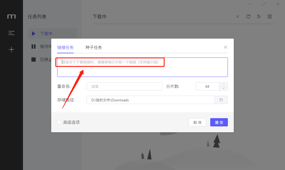 能够看到,软件支持的资源下载格式,包括:HTTP、HTTPS、FTP、磁力等等,并且,我们可以通过换行的方式,进行批量下载,妥妥的真香!
