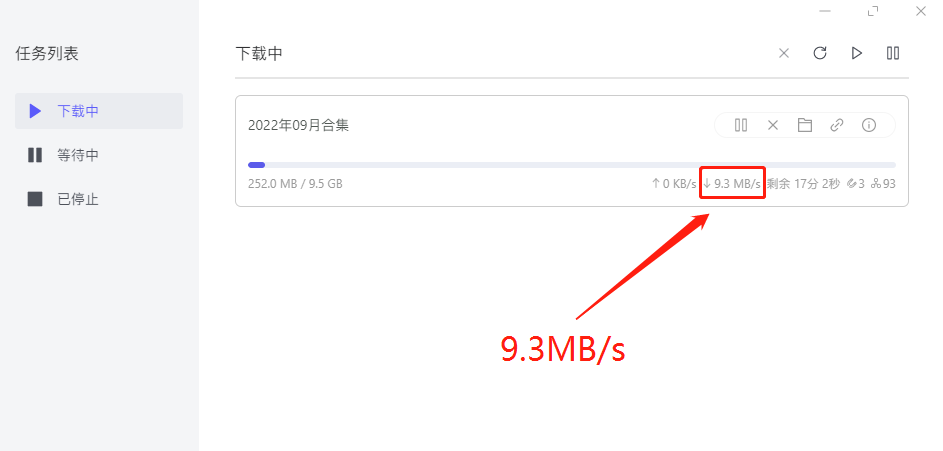 提交之后,那就是全速前进,感受一下,百兆光纤跑到9.3MB/s,还说什么呢?