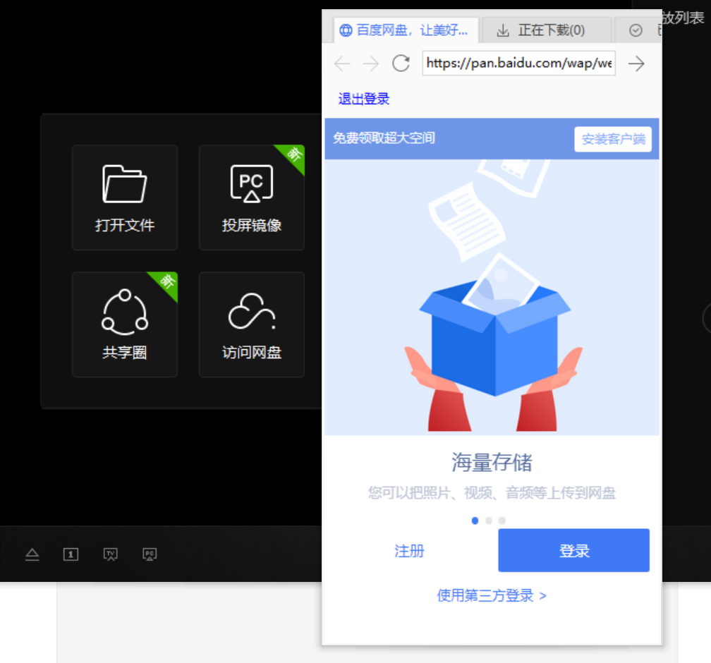点击后会弹出一个浮窗,可以看到,这里进入的是百度网盘的登录界面: