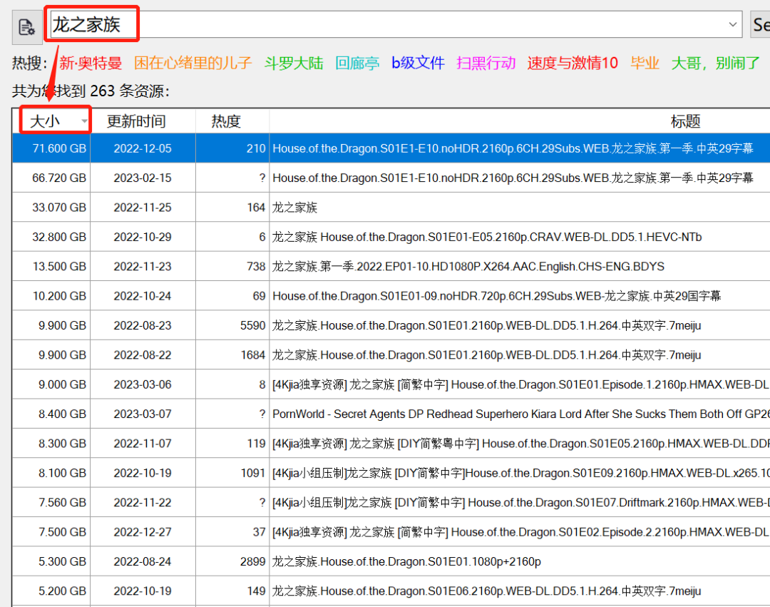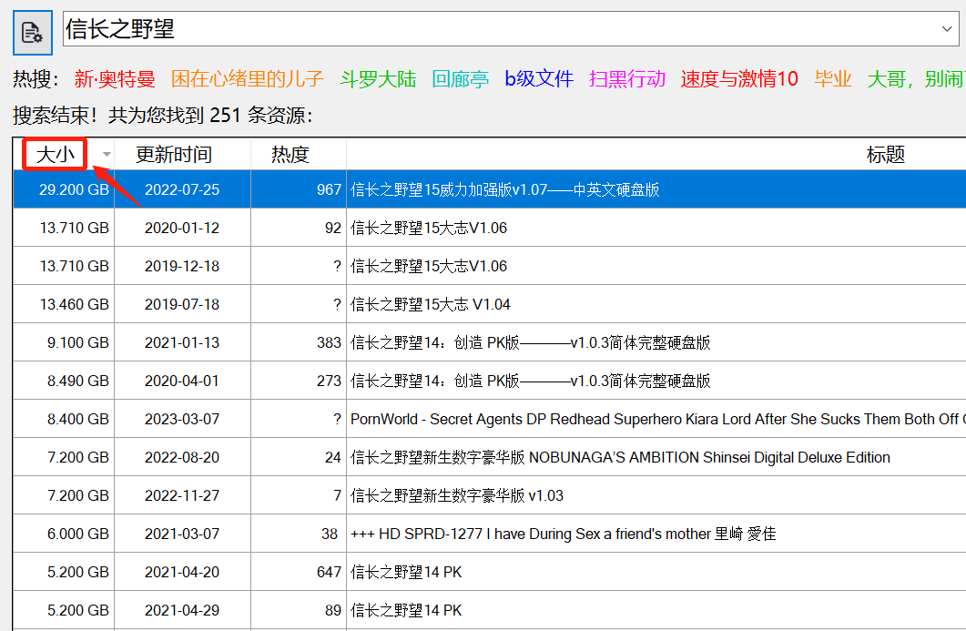 OK,我们换个资源试试,同样也都是有目共睹,像这类资源,为了图省事,建议使用大小排序,一次搞定!
