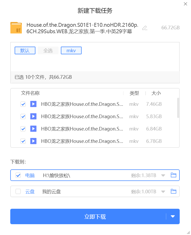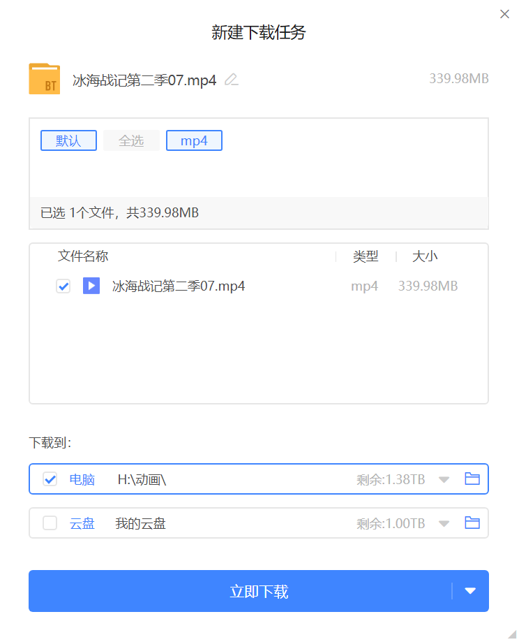 在已经启动相应磁力下载工具的前提下,便会自动唤醒下载界面: