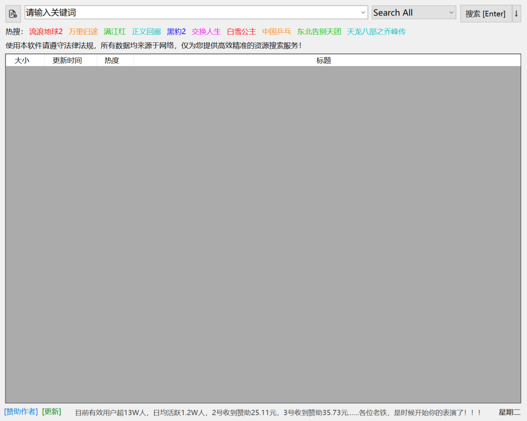 考虑到小伙伴们都需求,刺客今天,就为大家安排一款聚合了全网磁力搜索引擎的终极搜索下载神器!它可以让我们无需打开网页,直接在软件内获取任意想要的资源,并支持一键高速下载!关键是完全免费,没有任何广告,更无需注册登录即可使用,妥妥的聚合磁力神器!