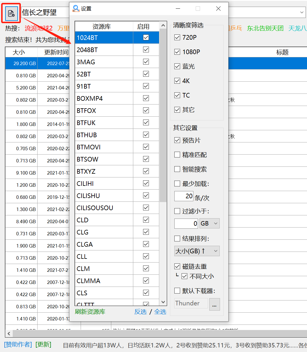 搜索框左边的图标,实际上就是设置,在这里可以看到,软件内置了海量的搜索引擎,同时,我们也可以进行各种自定义筛选:
