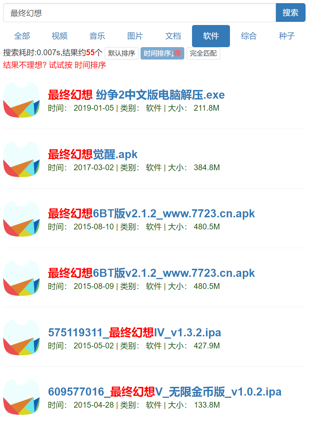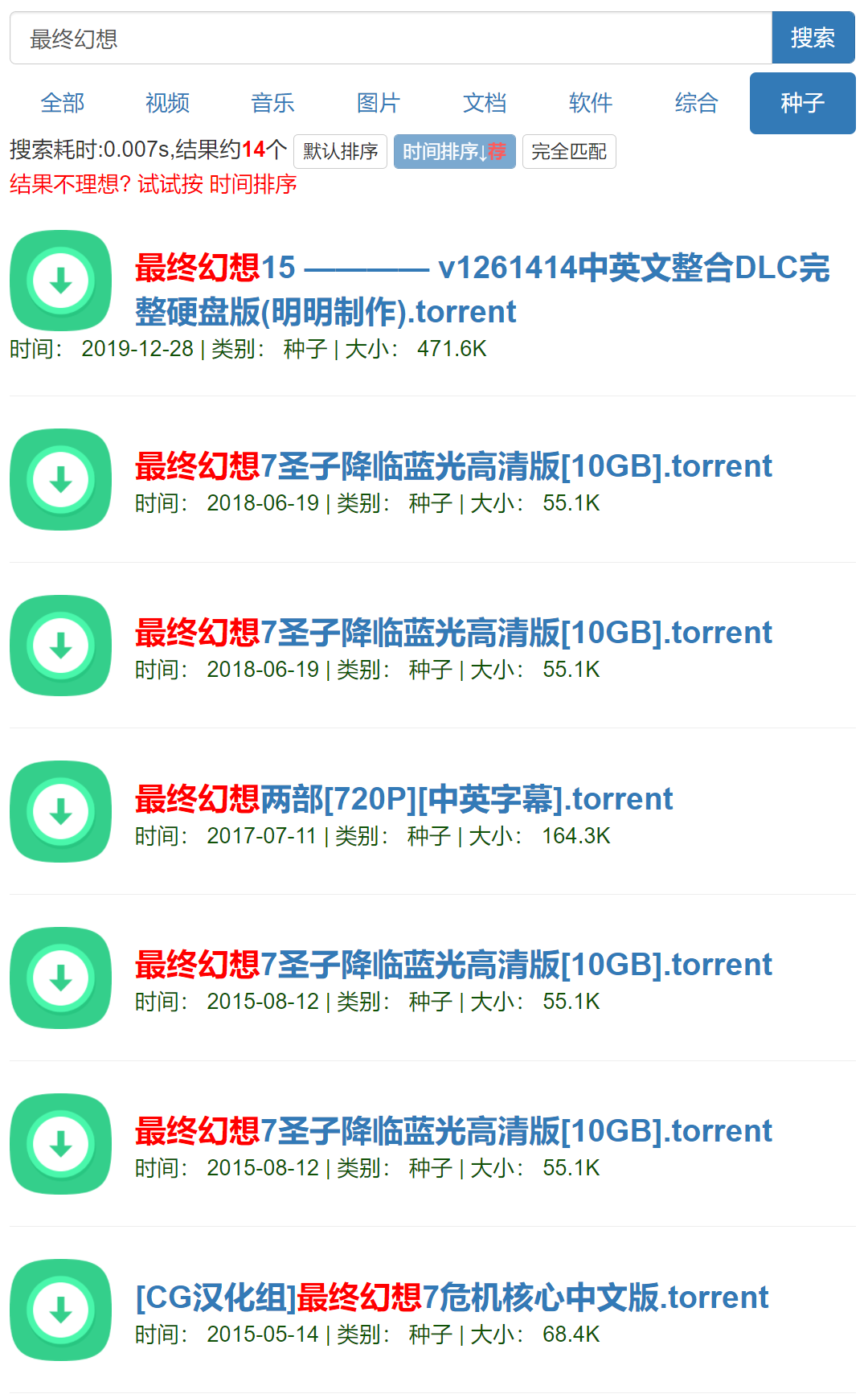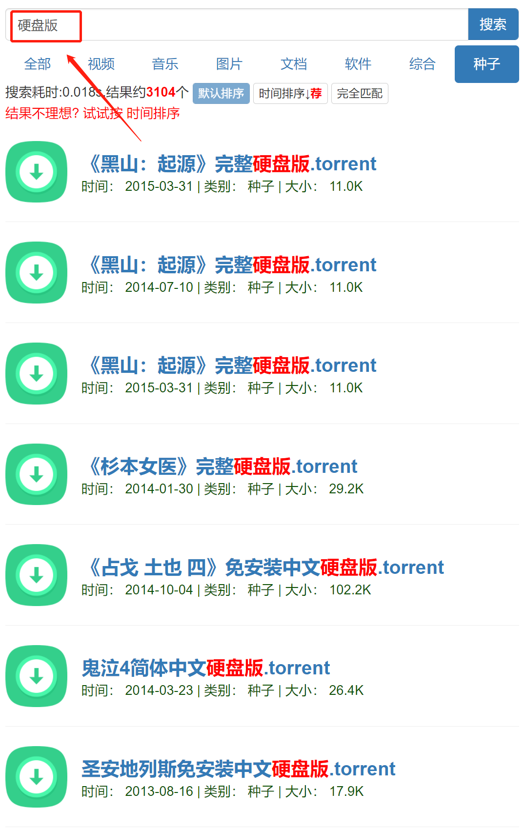 并且,搜索结果也可以进行筛分,包括:视频、音乐、图片、文档、软件、综合、种子.....也都是有图有真相: