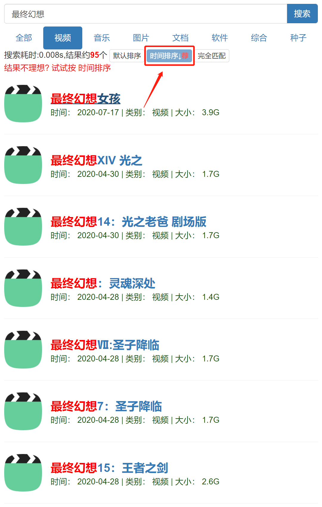 比如,我们想要日期最近的新资源,那么,直接点击时间排序:
