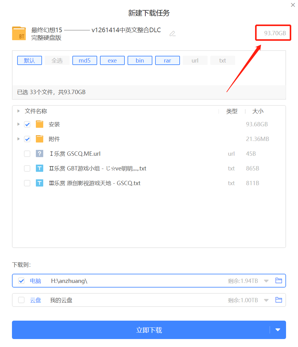 直接用相应的BT种子、磁力下载工具打开,瞧瞧,完整的本体+DLC,容量高达93.70GB,真的是绝绝子....