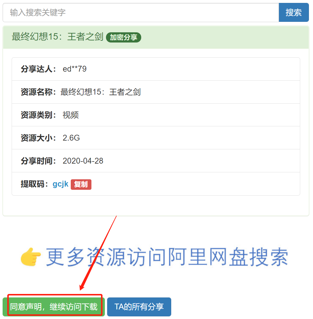 点开任意资源,点击下方的“同意声明,继续访问下载”:
