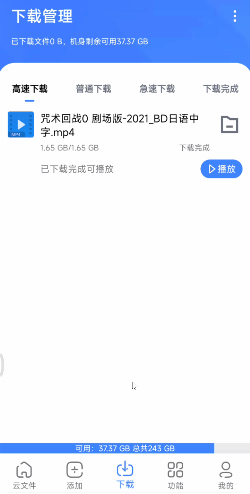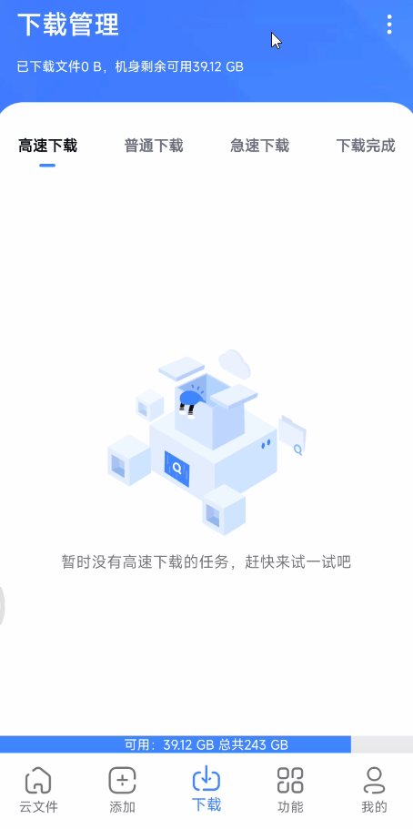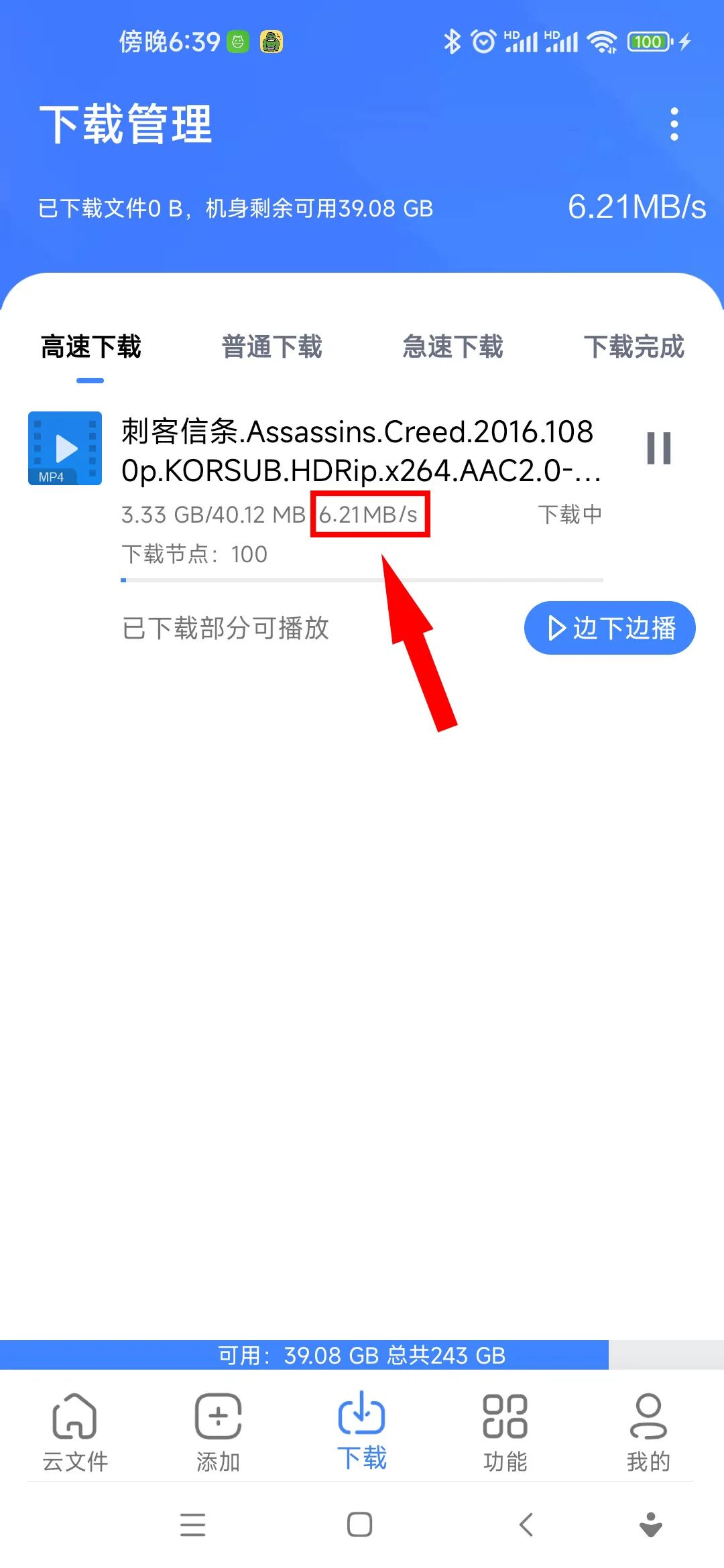 不仅如此,下载管理中可以看到居然提供了三种下载方式,包括:普通下载、高速下载和急速下载。