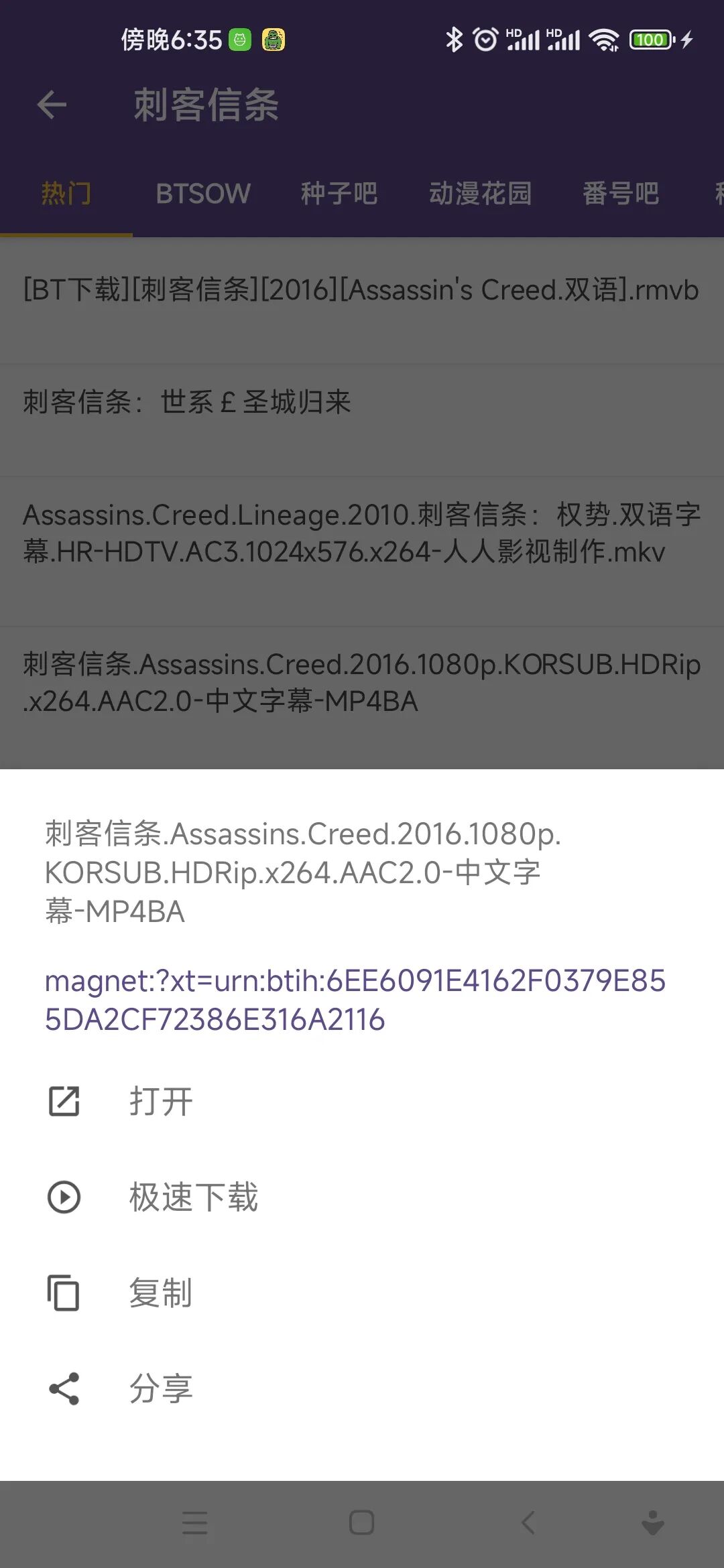 OK,我们换个资源再来一次!这次呢,刺客选用了另外一款磁力搜索APP。