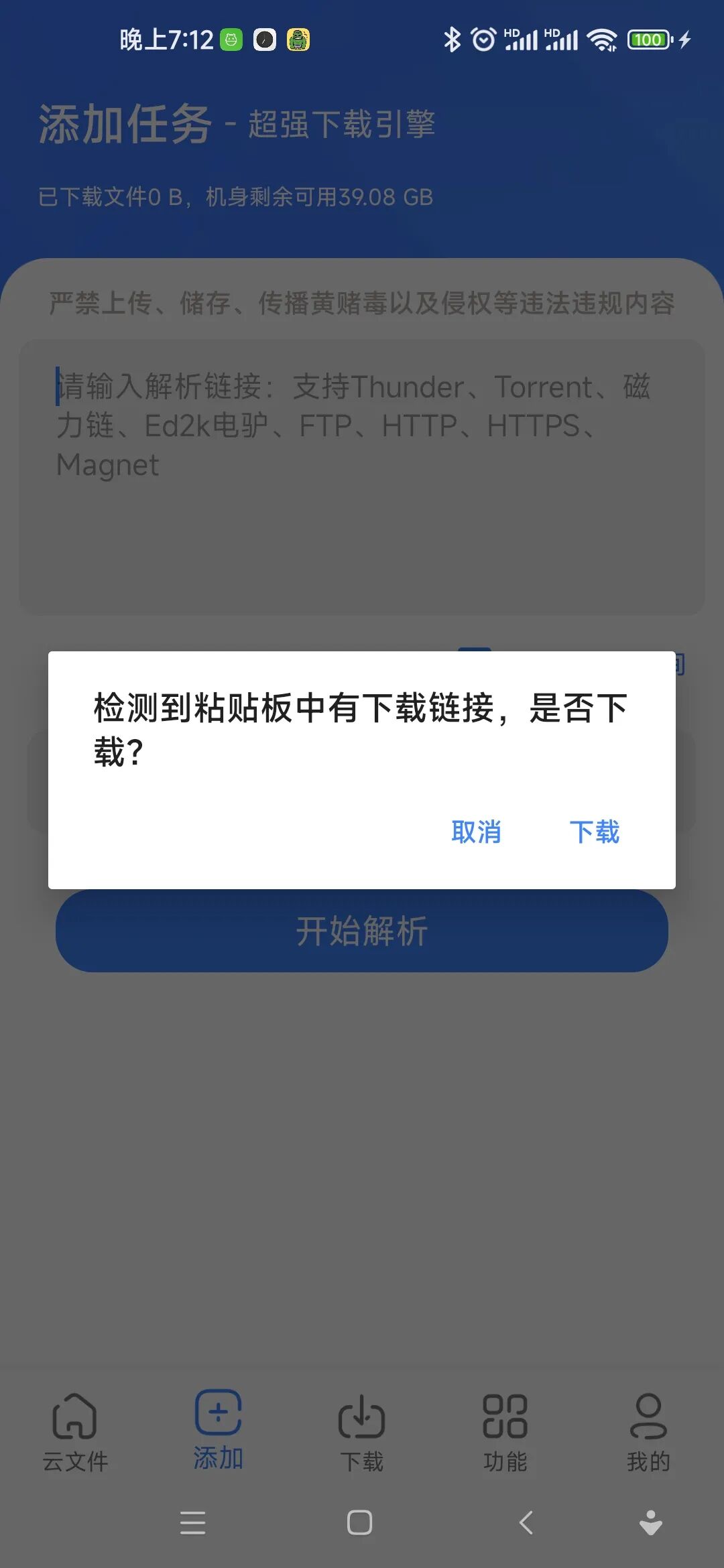然后,返回今天的软件,其实也会自动识别到粘贴板中的链接,点击下载就可以了。