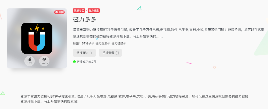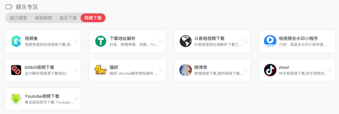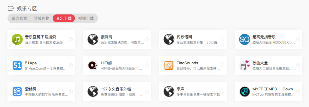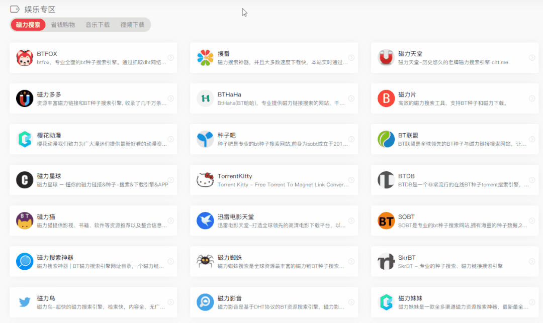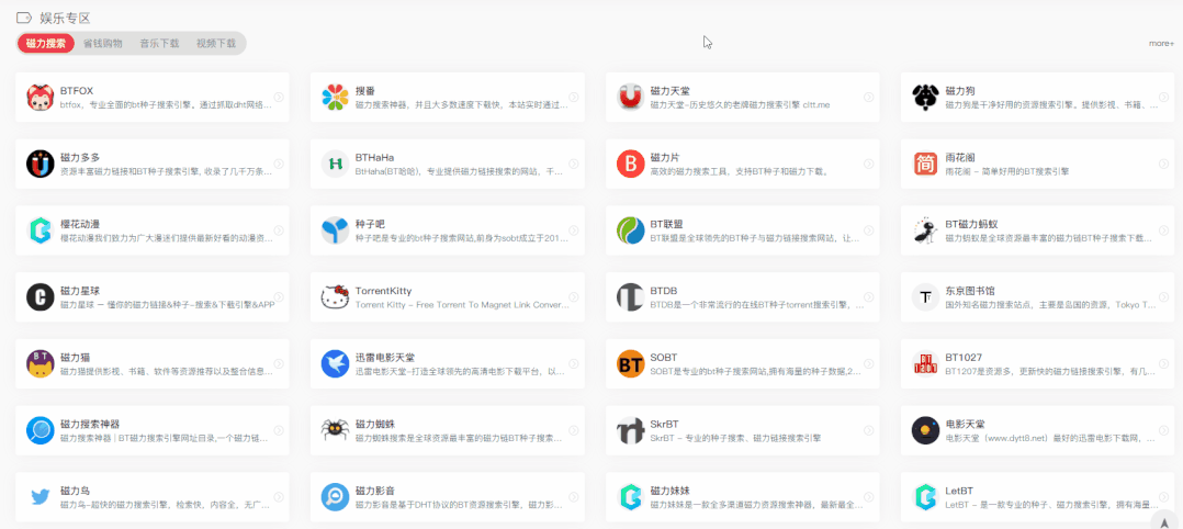 这里面包括了:磁力搜索、省钱购物、音乐下载、视频下载的内容,要知道,这里面可是藏着无穷无尽的神仙网站。