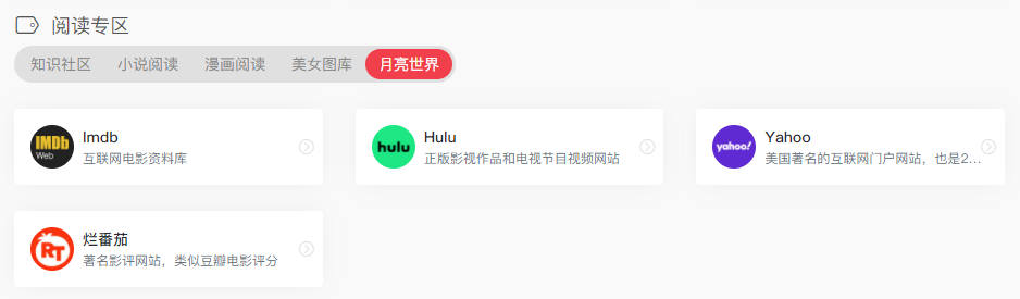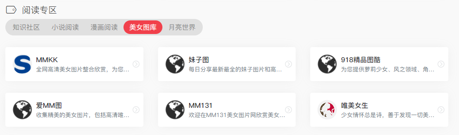 这里面包括哪些内容呢?有知识社区、小说阅读、漫画阅读、二次元+三次元图库,以及“月亮的世界”,嗯....哇嘎立马西大!
