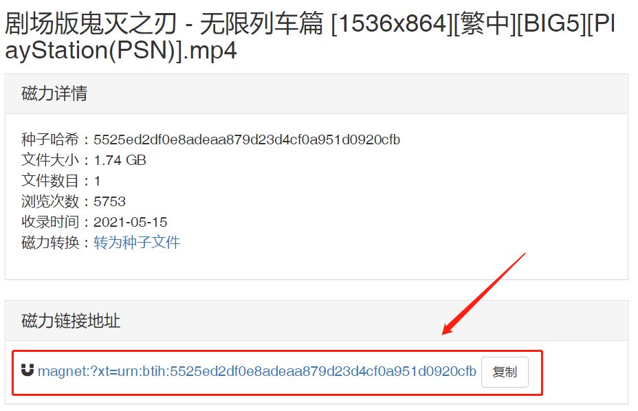 比如说这个,可以看到,网站直接提供了磁力链接地址,全程没有任何套路!