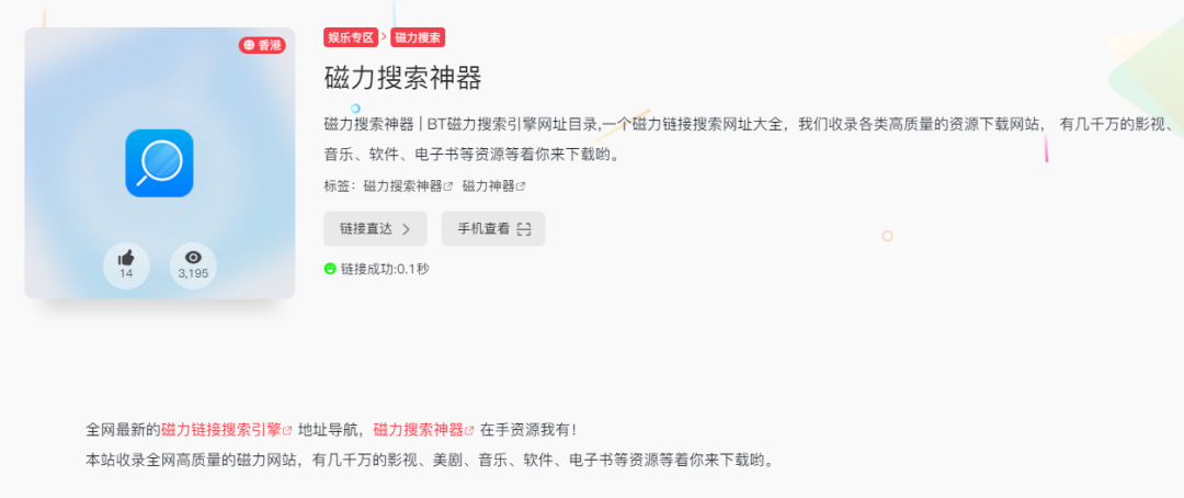不信?你们瞧瞧,一堆的磁力搜索网站、一堆的网盘搜索网站、一堆又一堆的漫画、小说、图库、音乐、视频、学习、素材、工具网站.....,总之一句话概括:“只有你想不到的,没有它做不到的”,这种含金量,你品、你品、你细品!
