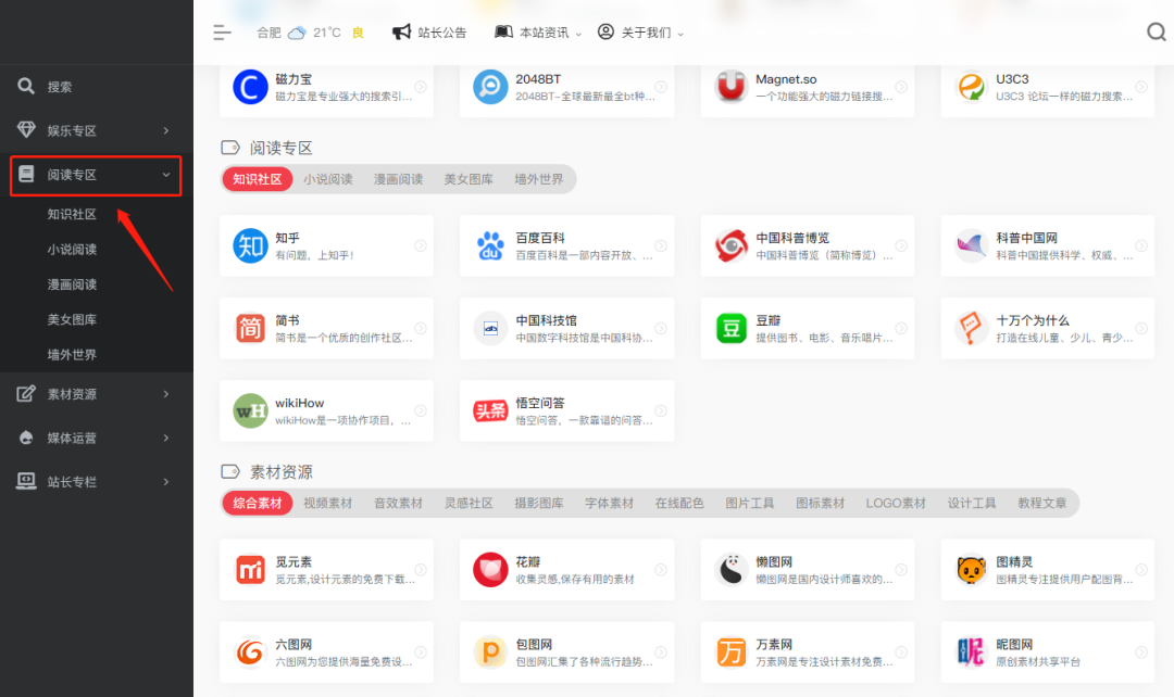 而在以上这些类型中,刺客最喜欢的,恰恰是导航网站!至于道理,也很简单,我们只需要找到一个优秀的导航站点,就可以顺藤摸瓜,挖出几十、几百,甚至上千个优质的资源网站,并且可以全面覆盖到我们所有:观影、追剧、动漫、游戏、漫画、小说、音乐、图片、视频、软件、工具的需求!