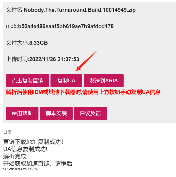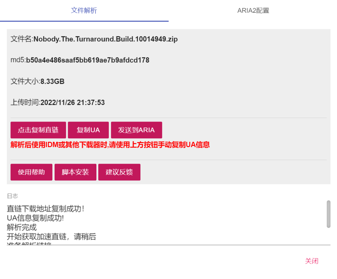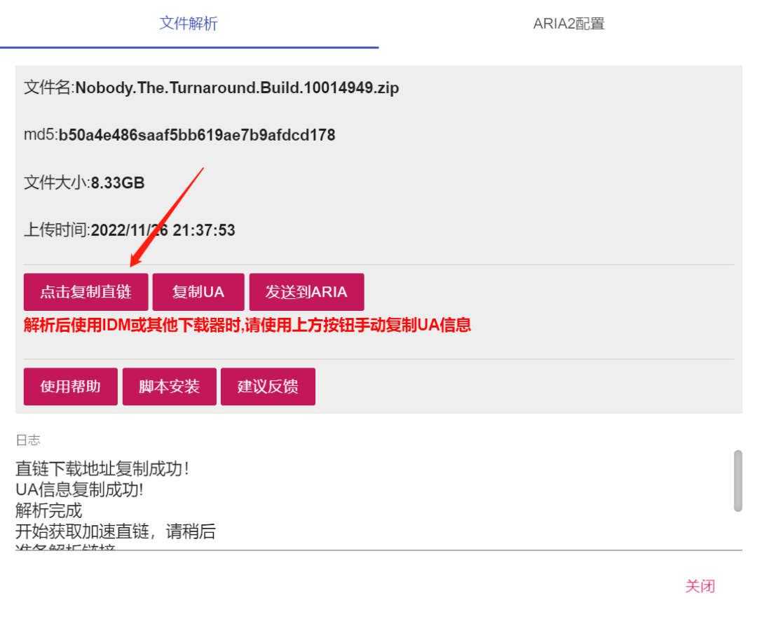 之后,我们返回刚刚的解析窗口,点击复制直链。
