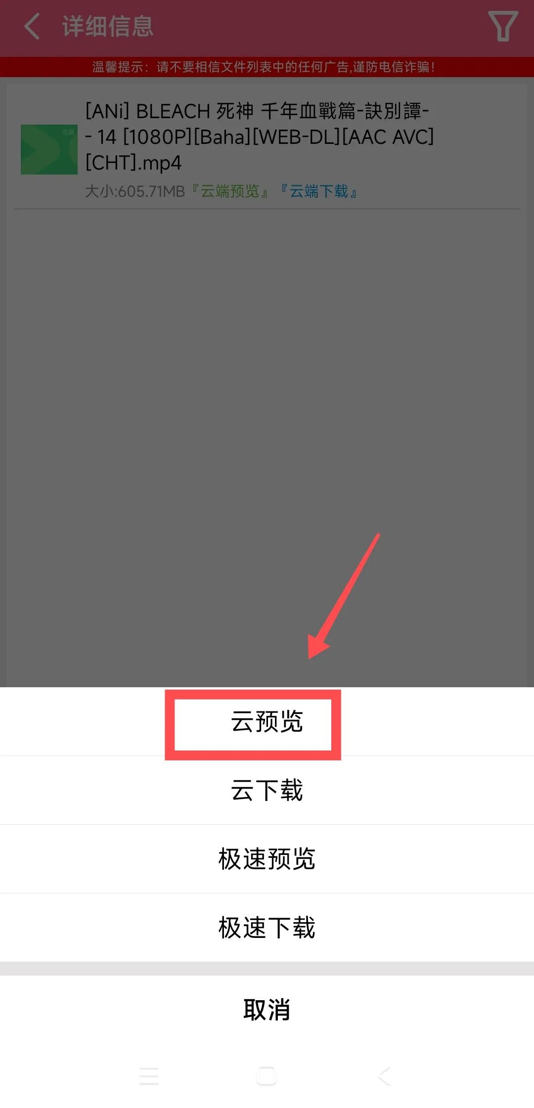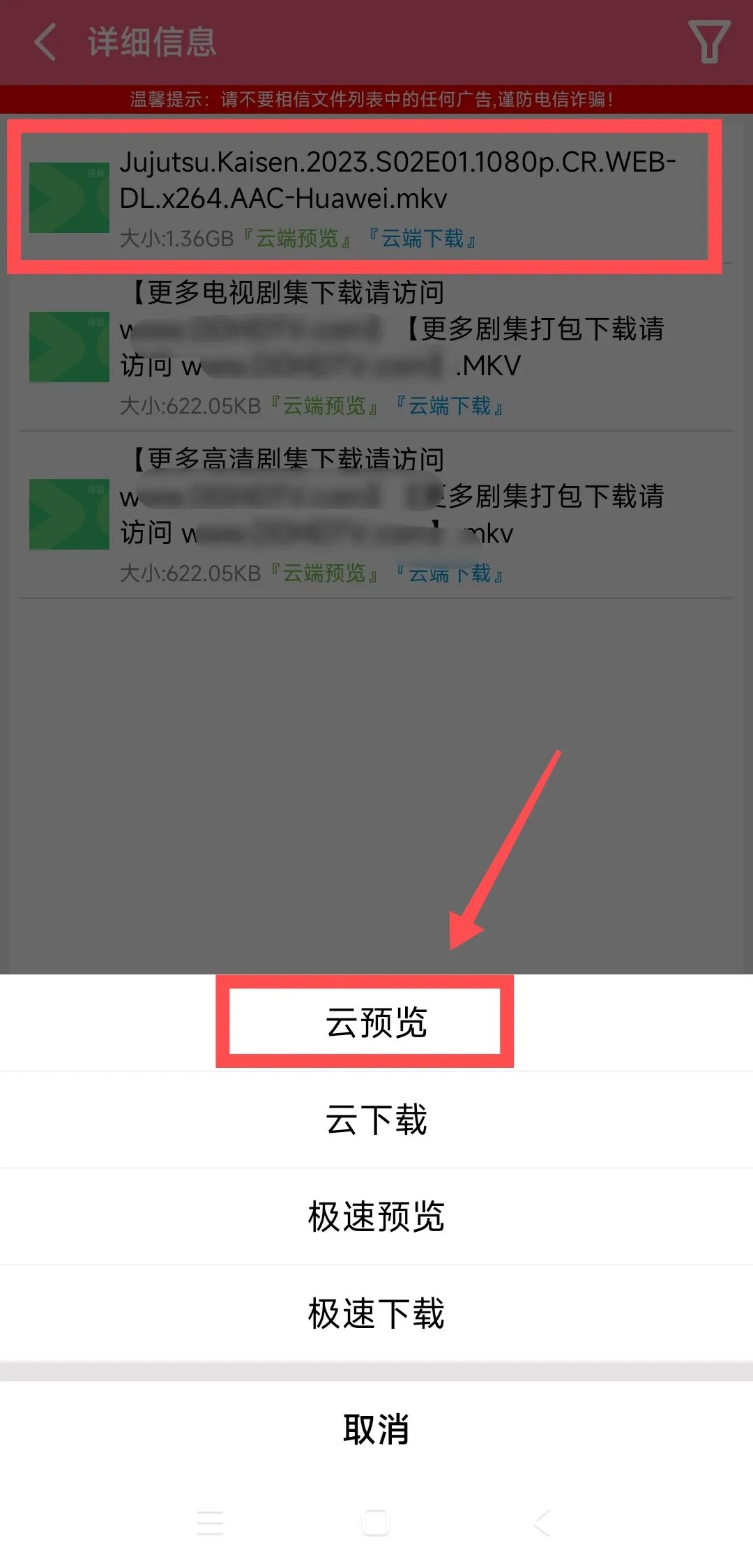 点击进入,即可看到完整的资源列表,这里我们选择云预览。