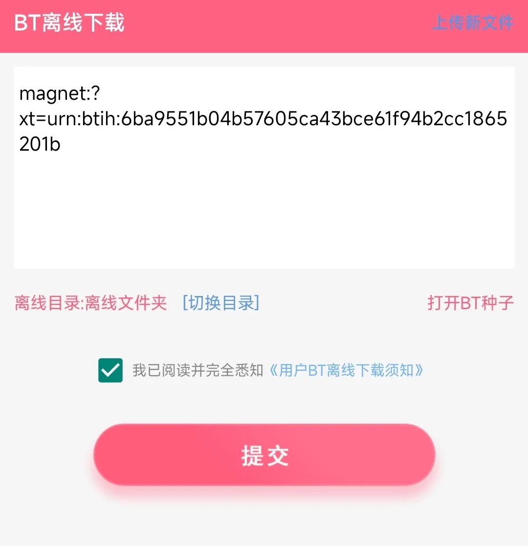 可以看到,它同时支持磁力链接以及种子文件两种格式。