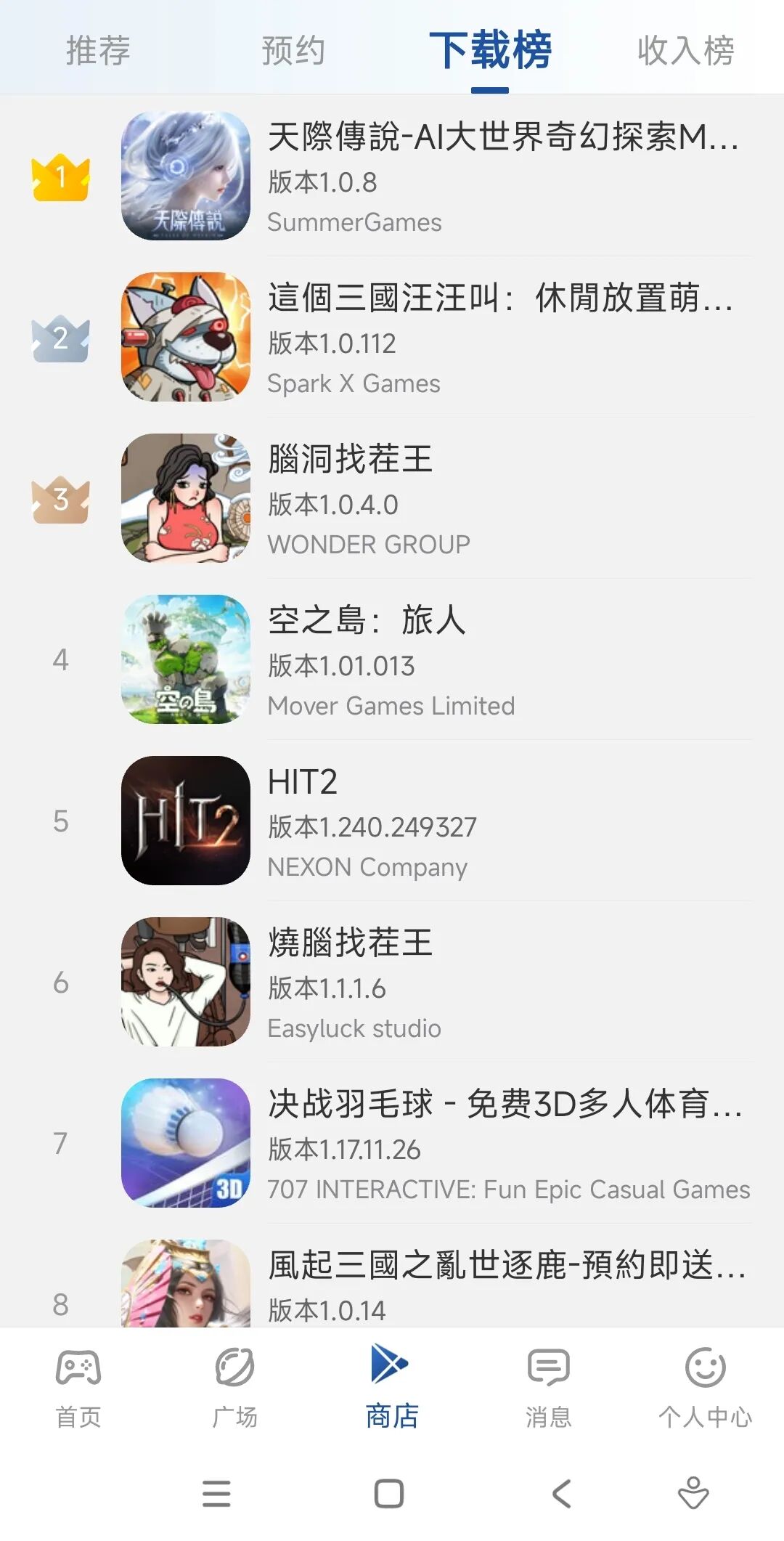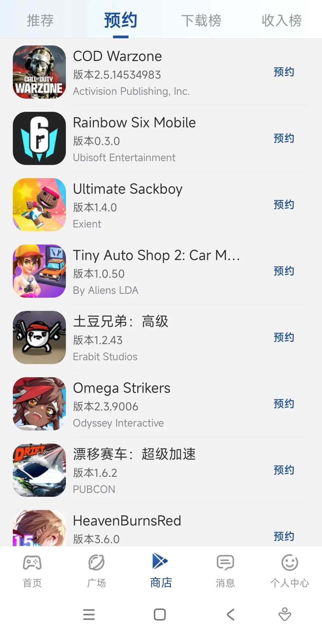 顶部的排行榜,可以看到许多即将推出的新游戏: