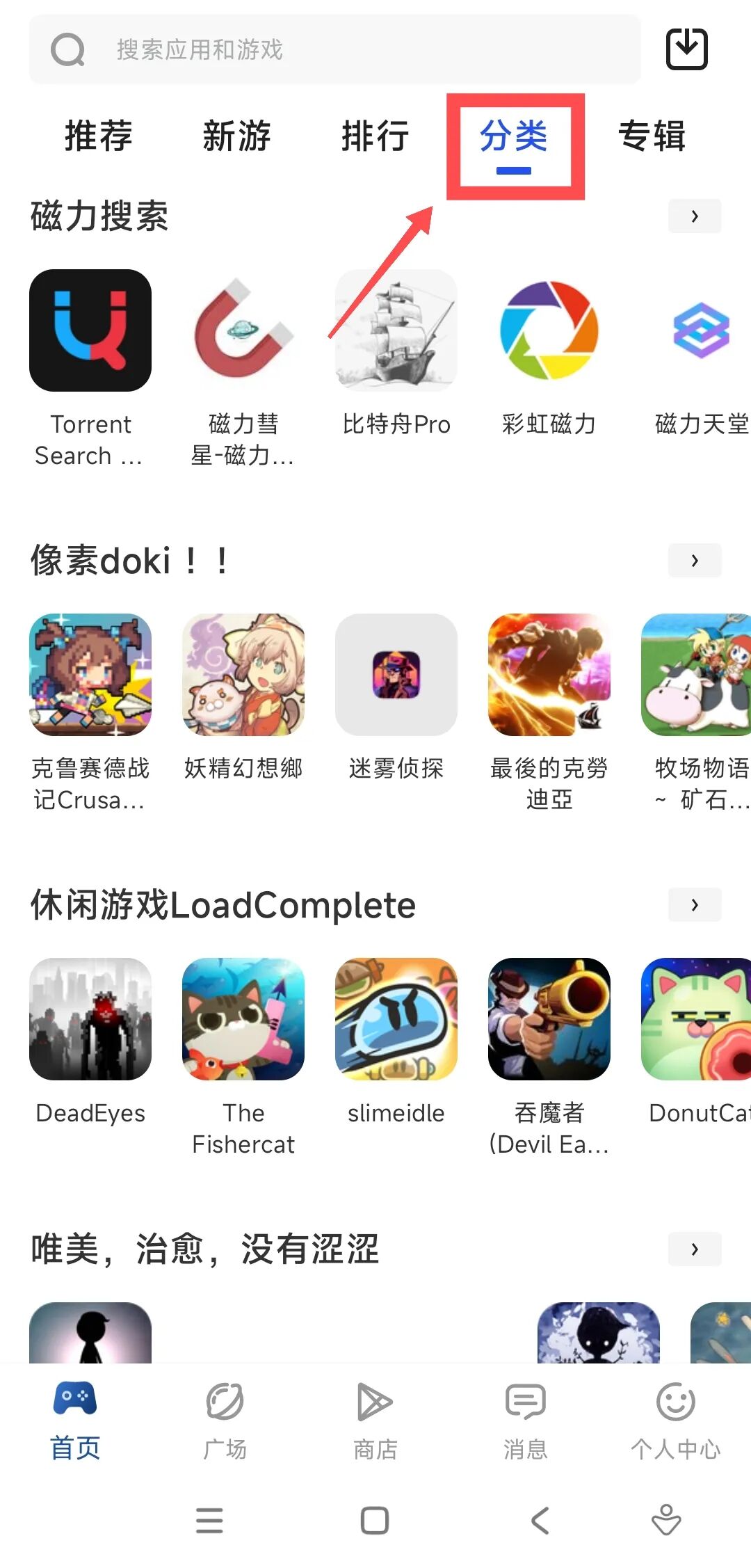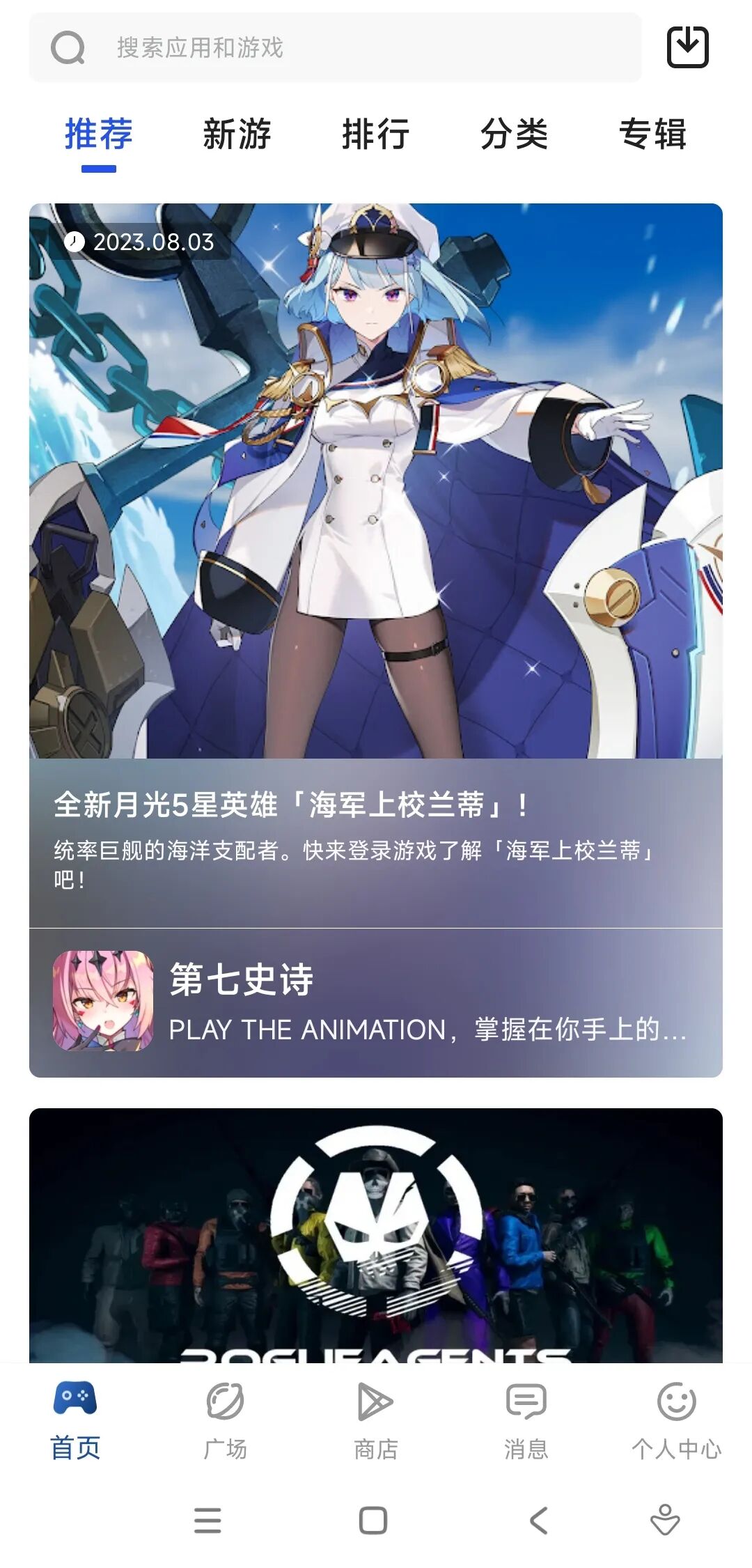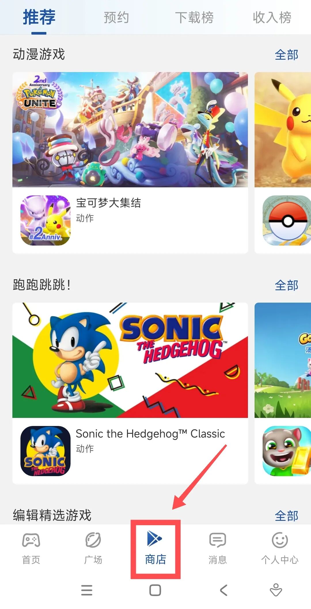 另外我们点击底部正中央的商店,这里会自动跳转到对应区域的应用中心: