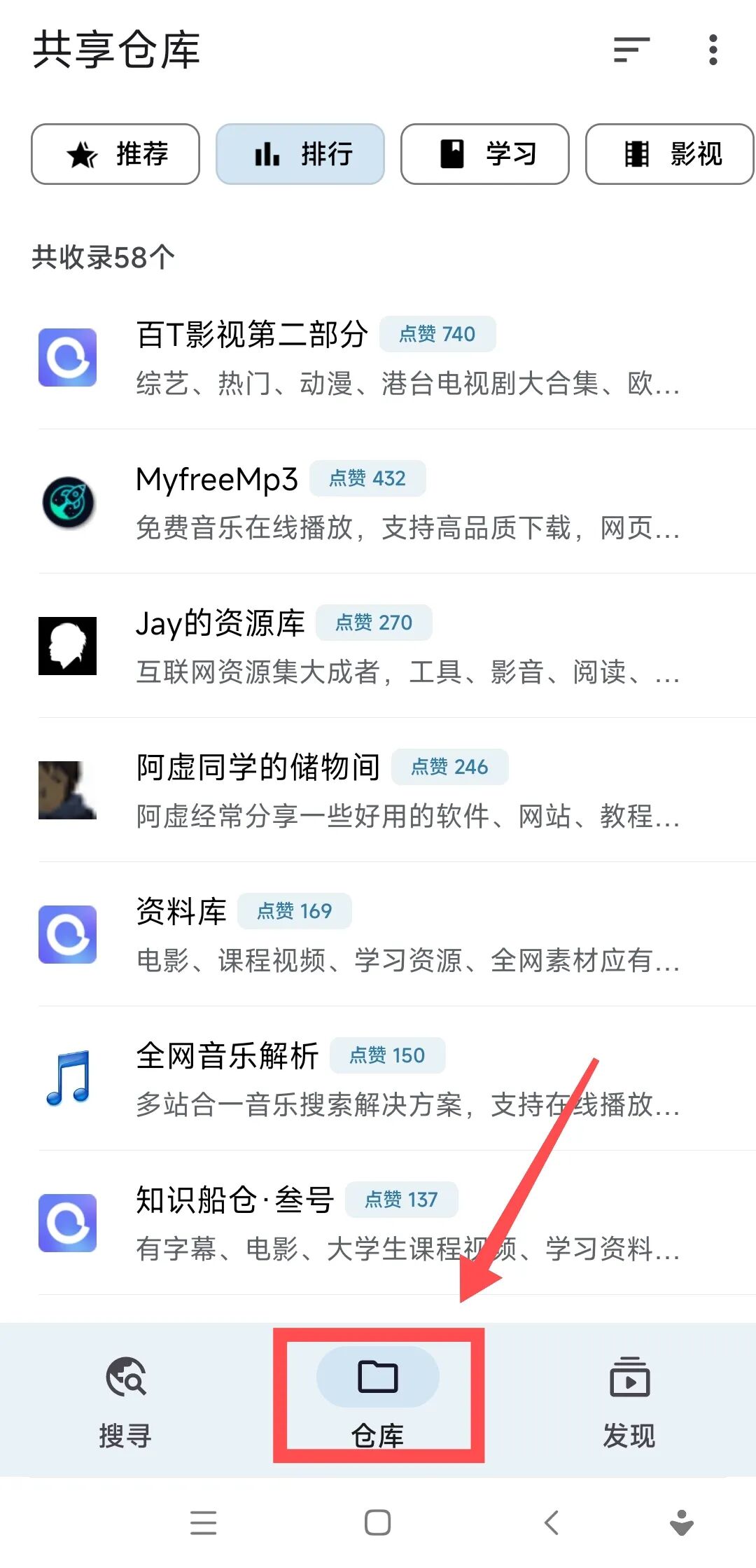 除了常规的搜索外,底部导航栏里的仓库,则藏着更多的惊喜。