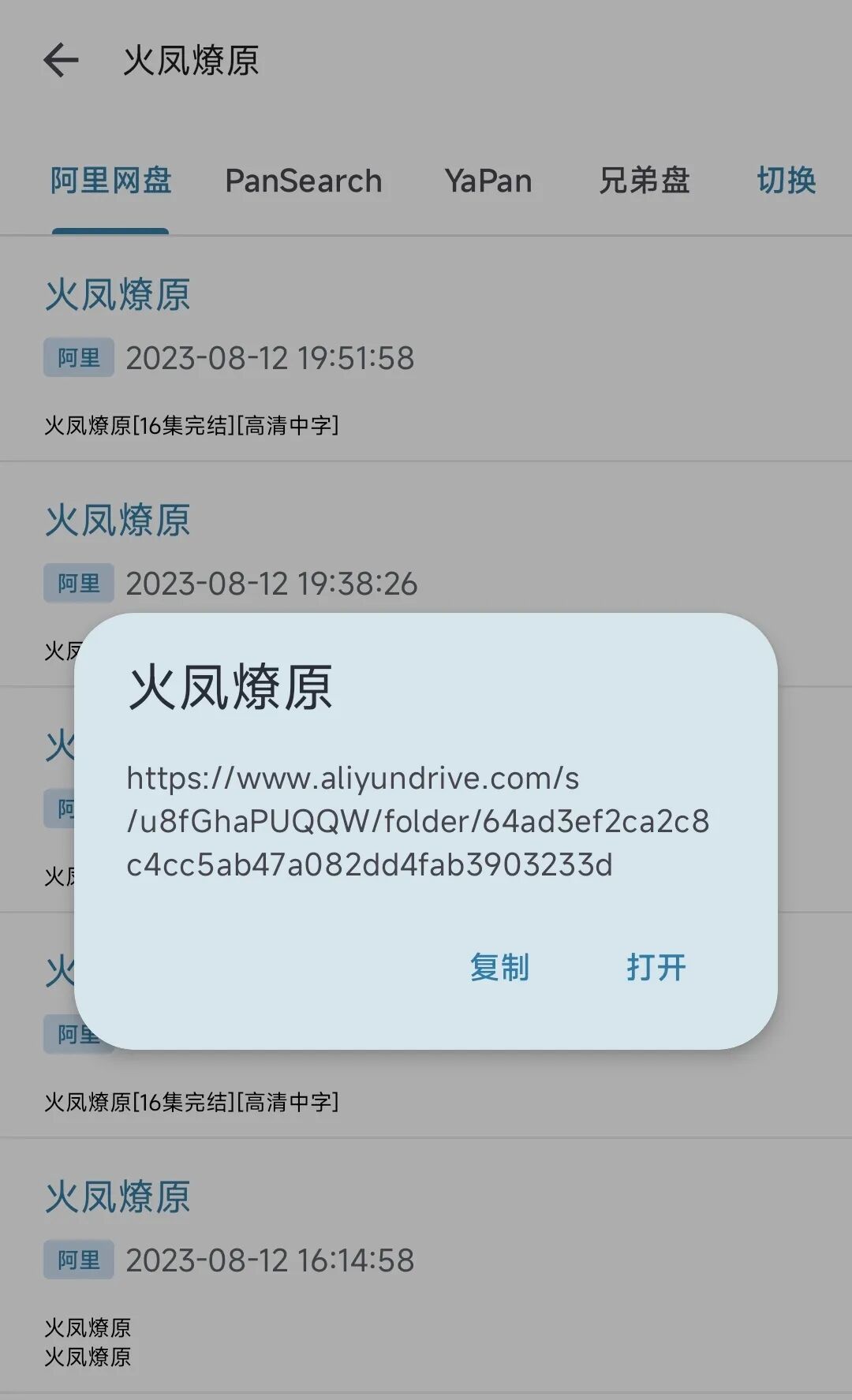 点击任意词条,会弹出具体的资源链接,单击“打开”即可: